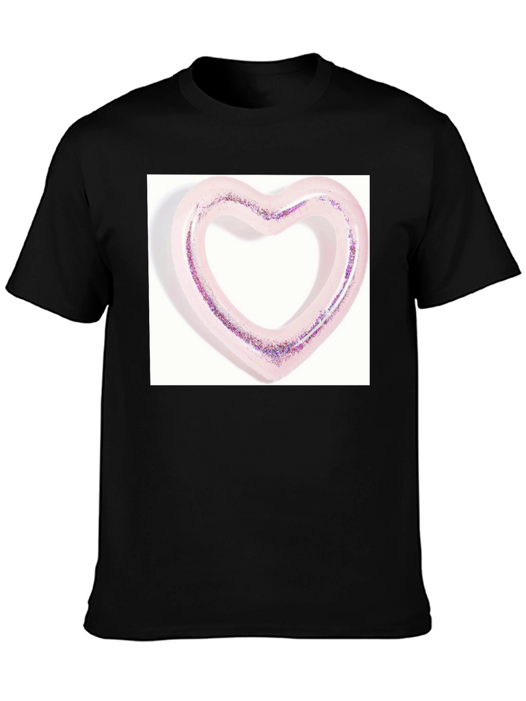 Show your love with this stylish black graphic tee! This casual shirt features a unique heart-shaped design, perfect for adding a touch of romance to your everyday look. The design is on the front, offering a distinctive and eye-catching accent. This tee is made from a comfortable fabric, ensuring a great fit and all-day comfort. Pair it with your favorite jeans or shorts for a relaxed, trendy outfit. This shirt is a fun and fashionable choice for expressing your personality and making a statement.
