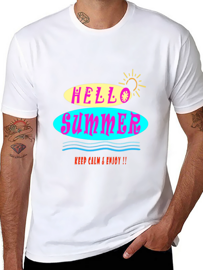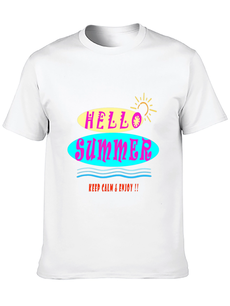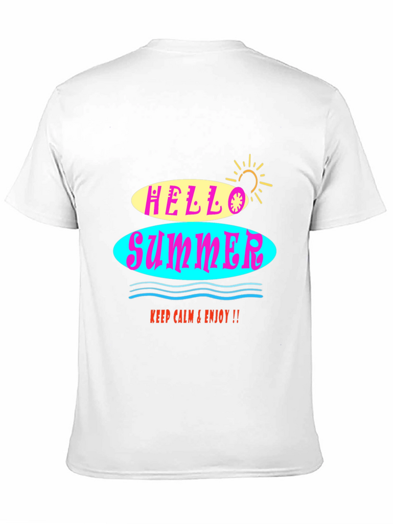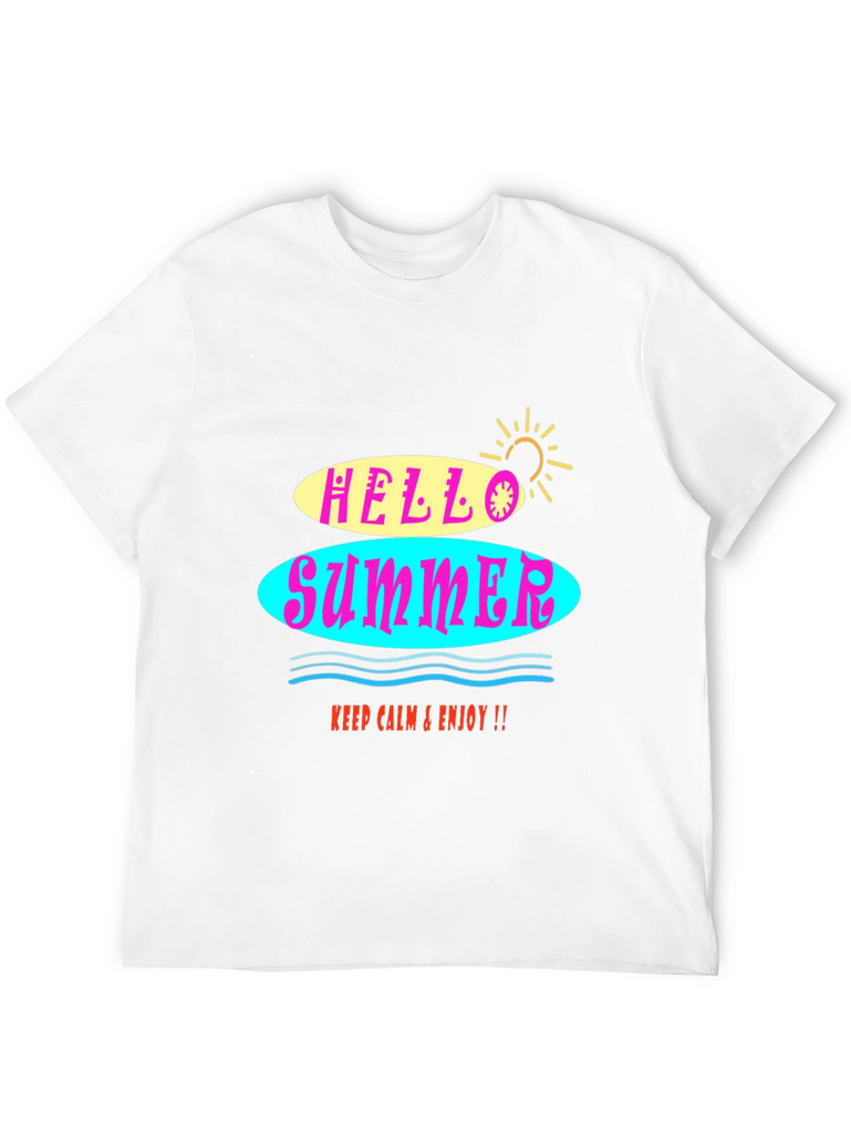 Embrace the summer vibes with this stylish black graphic tee! The shirt features a vibrant "Hello Summer" design with colorful retro-inspired lettering. The soft fabric ensures a comfortable fit, perfect for warm weather. Whether you're hitting the beach or just hanging out, this t-shirt will add a fun, laid-back touch to any outfit. It's a versatile and trendy piece that will keep you looking and feeling cool all season long. Easy to pair with jeans, shorts, or a skirt for a casual yet fashionable look.