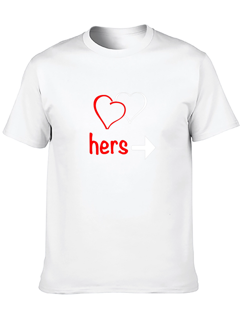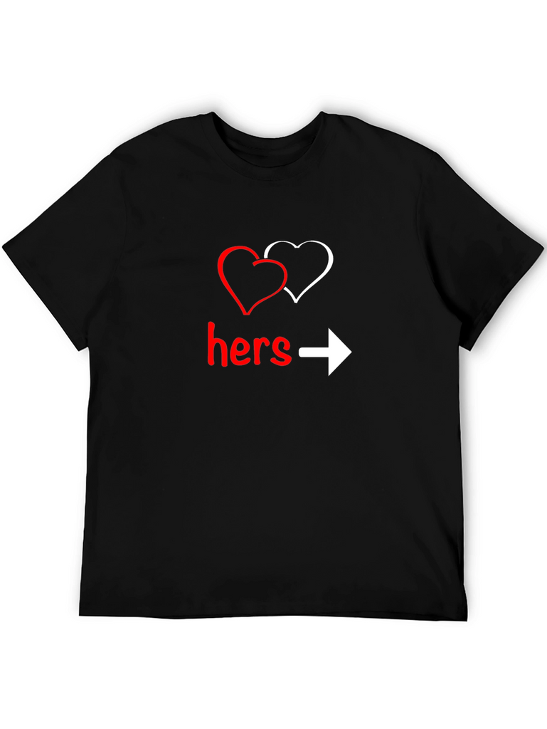 Show your affection with this charming graphic tee! This black t-shirt features a unique design with a red heart and white heart illustration, paired with the word 'hers' and an arrow pointing to the right. Perfect for couples, anniversaries, or Valentine's Day, this tee is a fun and stylish way to express your love. The comfortable fit makes it ideal for everyday wear, while the eye-catching design ensures you'll stand out from the crowd. Grab one for yourself and your loved one and spread the love!