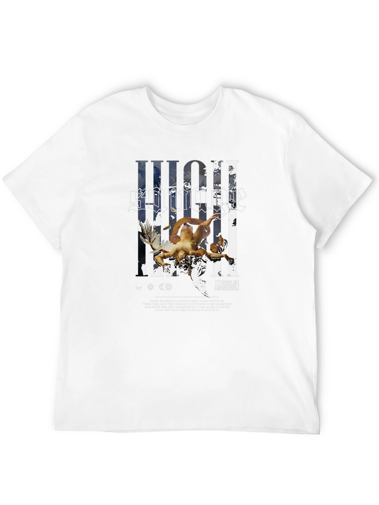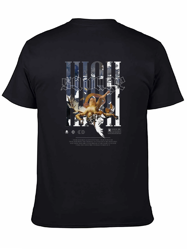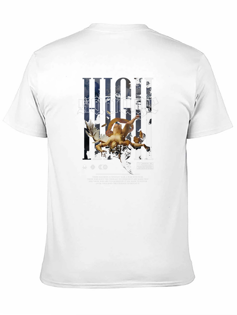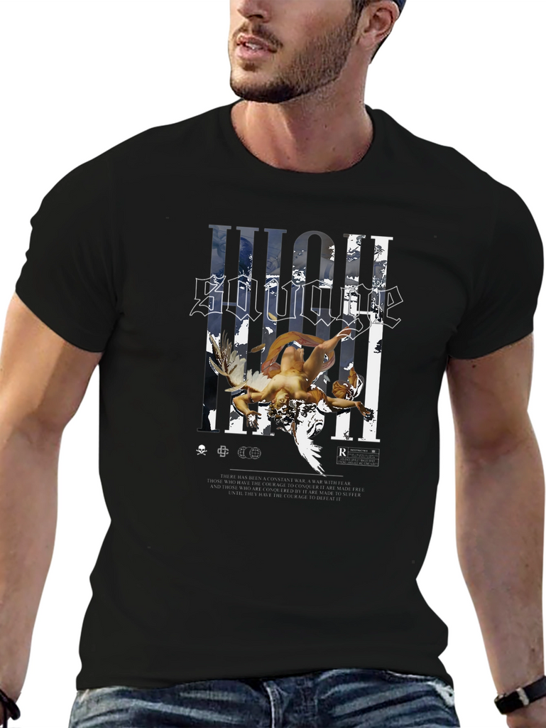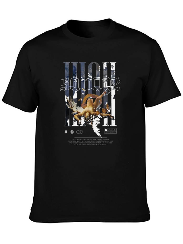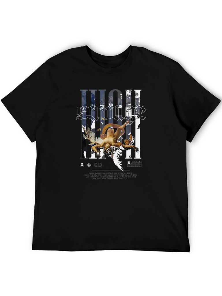 Elevate your streetwear style with this striking black graphic tee. The shirt features a bold "High Culture" design overlaid with classical art elements, creating a unique and edgy aesthetic. Constructed from a comfortable, breathable fabric, this tee is perfect for everyday wear. The intricate graphics and modern fit make it a standout piece, ideal for casual outings or adding a statement to your wardrobe. Make a statement with this unique piece, perfect for expressing your love for art and contemporary fashion.