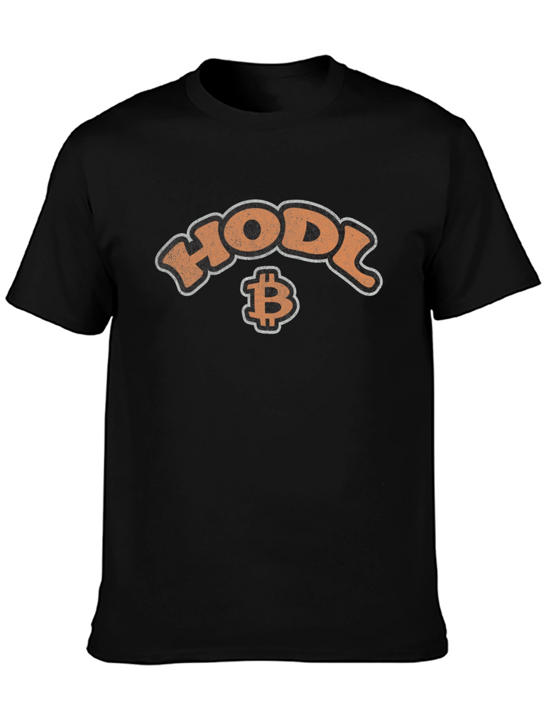 Show your support for cryptocurrency with this stylish black HODL Bitcoin t-shirt. The design features the word "HODL" in a vintage orange font, arched above the Bitcoin symbol. Made from comfortable, breathable fabric, this shirt is perfect for casual wear or attending crypto meetups. The classic black color ensures versatility, pairing well with jeans, shorts, or your favorite casual bottoms. The design is simple and eye-catching, sure to start conversations with other crypto enthusiasts. The tee will add a modern, tech-savvy twist to your wardrobe.