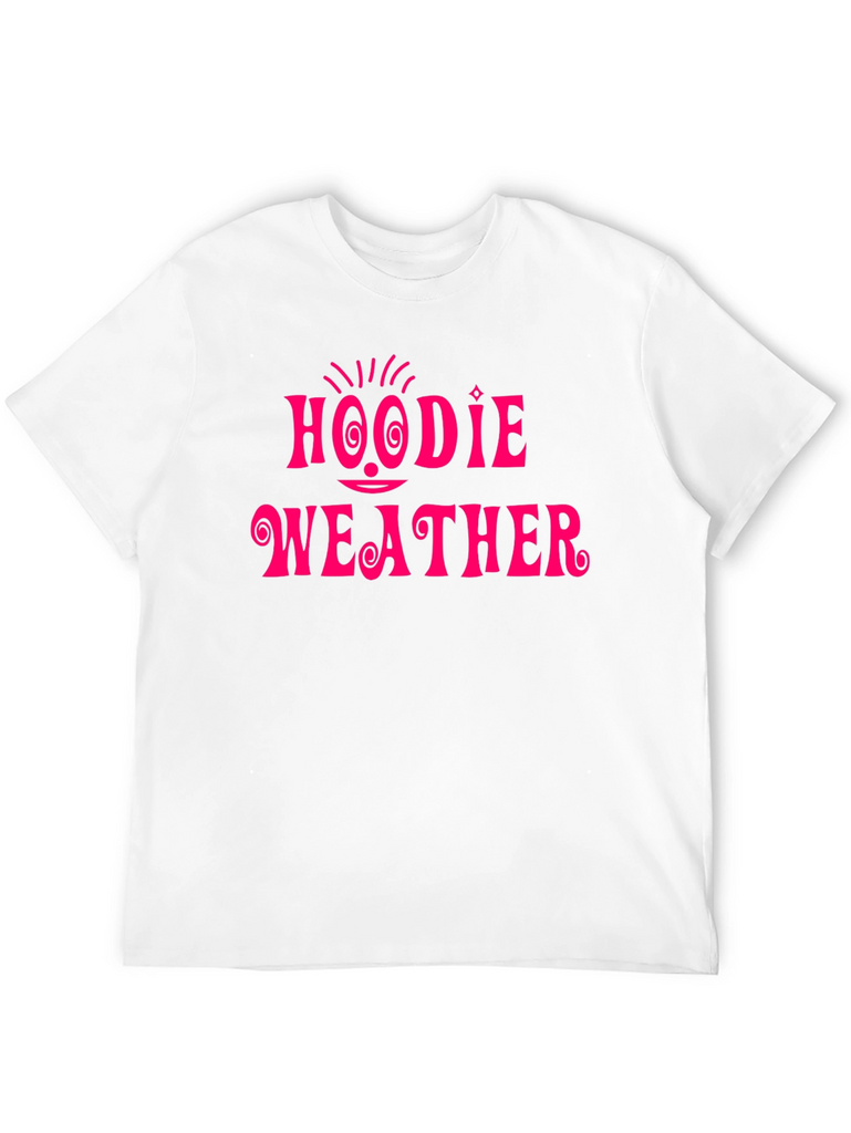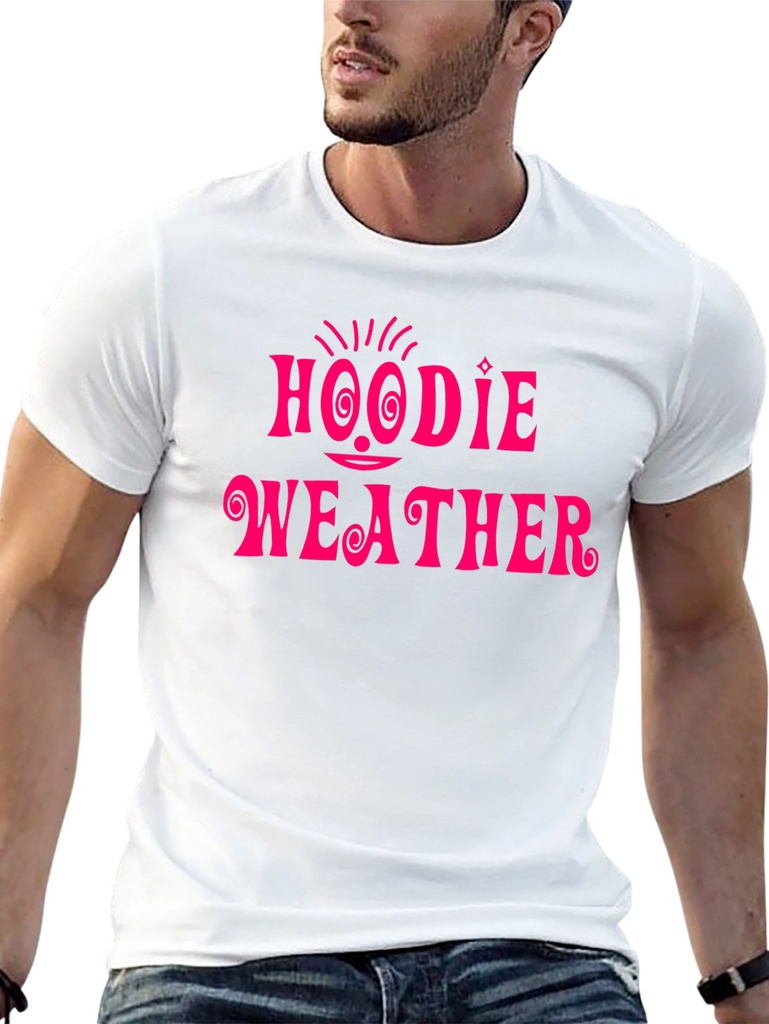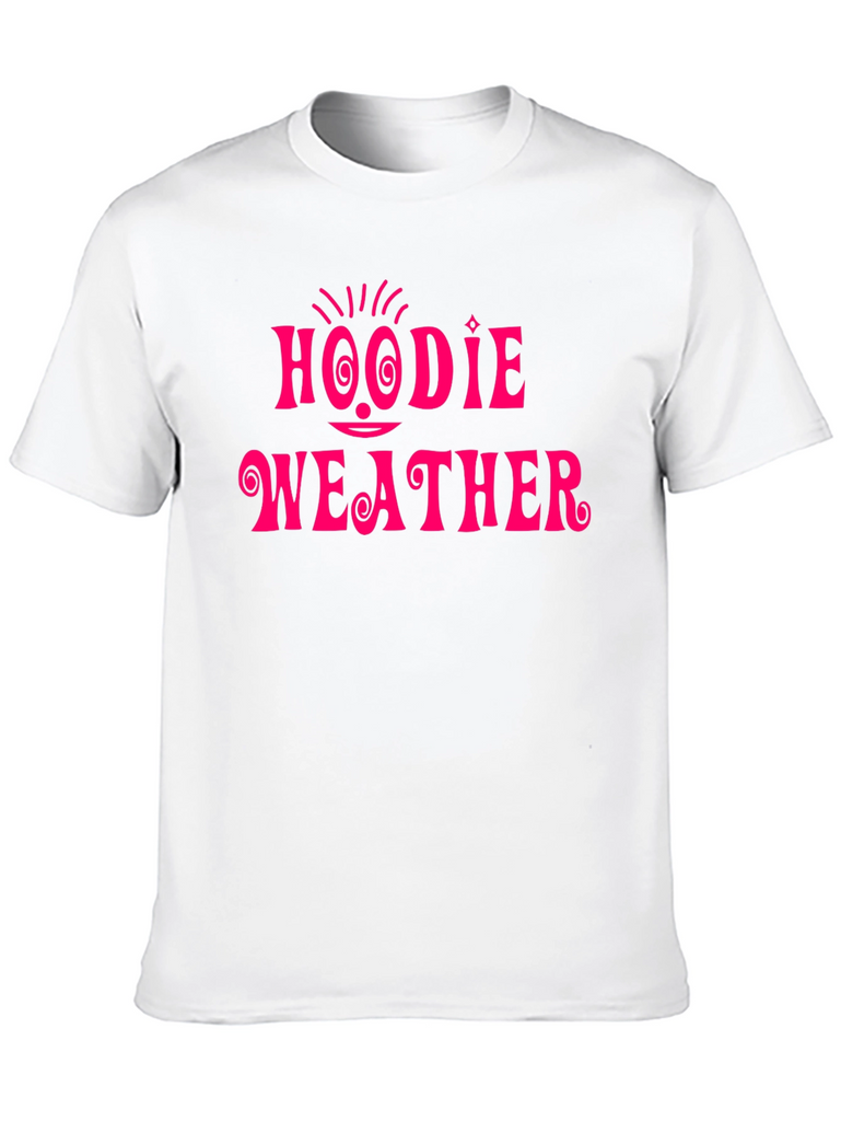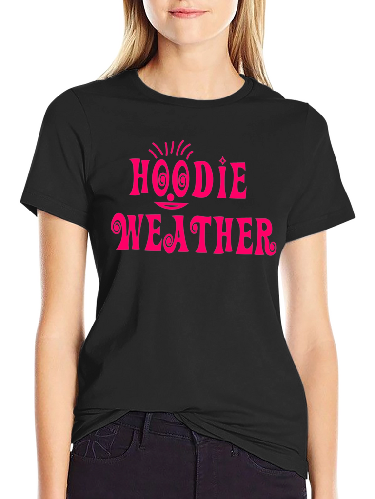 Embrace the cooler days with this stylish black T-shirt. Featuring a bold, playful "Hoodie Weather" graphic in a vibrant pink hue, this tee is perfect for expressing your love for cozy comfort. The eye-catching design is sure to turn heads, while the classic black backdrop ensures it pairs seamlessly with any outfit. Made from a soft, breathable fabric, this shirt promises all-day comfort. Ideal for casual outings, weekend adventures, or simply lounging at home, this "Hoodie Weather" T-shirt is a must-have for any wardrobe.