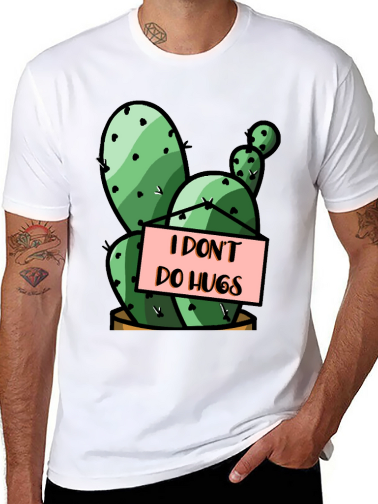 Show off your quirky side with this I Don't Do Hugs Cactus T-Shirt. The design features a vibrant green cartoon cactus graphic in a terracotta-colored pot, complete with prickly spines and a funny pink sign that reads "I DON'T DO HUGS." Made from soft, breathable fabric, this tee is perfect for those who love humor and appreciate personal space. Wear it casually with jeans, shorts, or dress it up with a blazer for a unique look. Ideal for everyday wear, casual outings, or as a gift for your favorite introvert or plant lover. Stay comfortable and stylish while expressing your personality.