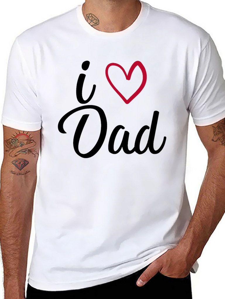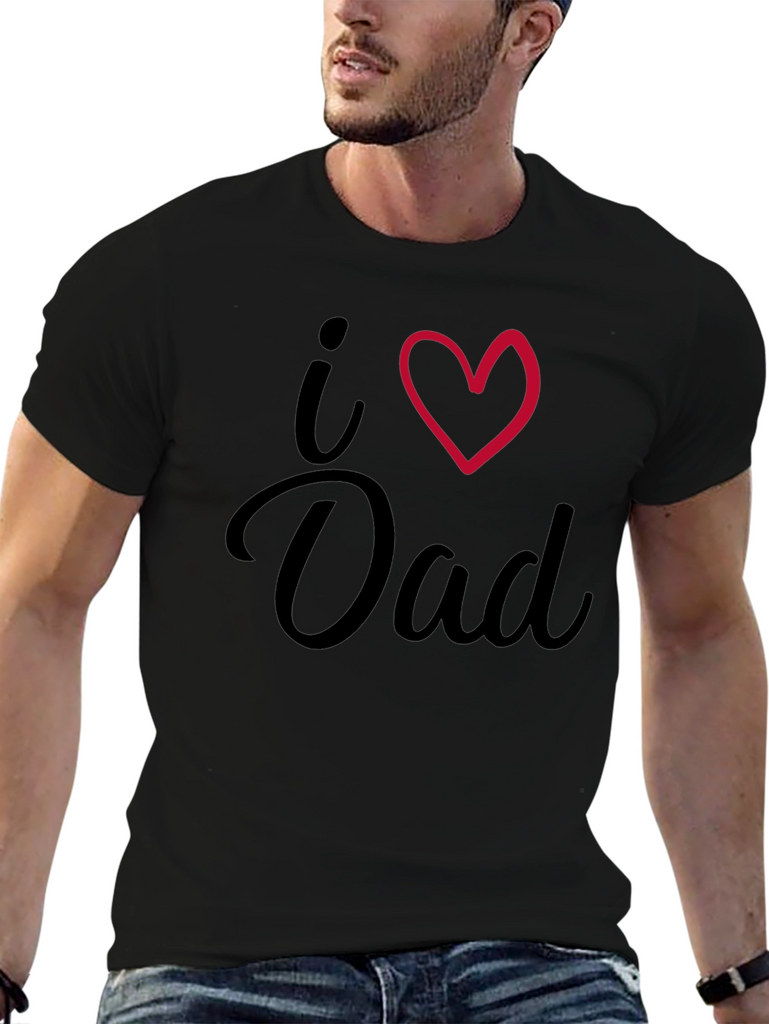Show your love for Dad with this stylish black t-shirt. The shirt features a bold "I Heart Dad" graphic. Made from comfortable, breathable fabric, this tee is perfect for everyday wear. Its classic fit makes it a versatile addition to any wardrobe. Whether you're celebrating Father's Day or simply want to express your appreciation, this t-shirt is a thoughtful and fashionable choice. Get yours today and let Dad know he's loved!