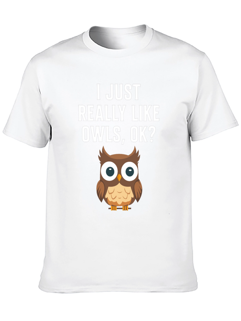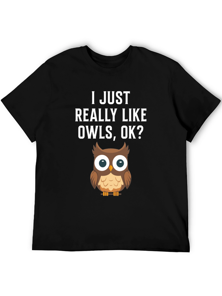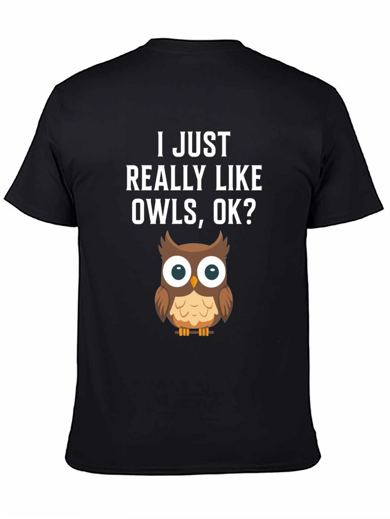 Show your love for owls with this fun and quirky t-shirt! Made from a comfortable material, this black tee features a cartoon owl graphic with the humorous text "I JUST REALLY LIKE OWLS, OK?". It's perfect for casual wear, owl enthusiasts, or anyone with a playful sense of humor. Great for everyday use, parties, or as a unique gift. Express your passion for these nocturnal creatures in style!