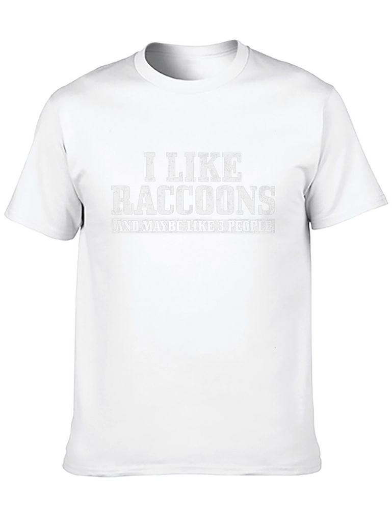 Show off your unique sense of humor with this eye-catching graphic t-shirt. The shirt features a bold, distressed text design that reads "I LIKE RACCOONS AND MAYBE LIKE 3 PEOPLE." This comfortable tee is made from a soft, breathable fabric, perfect for everyday wear. Its classic fit makes it a versatile addition to any wardrobe. Whether you're an animal lover or just enjoy a good laugh, this shirt is sure to be a conversation starter. Ideal for casual outings, lounging at home, or as a fun gift for the raccoon enthusiast in your life. Get yours today and express your quirky side!