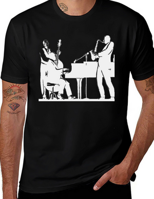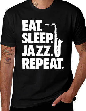 Show your love for jazz music with this stylish black t-shirt. The shirt features a bold "I (red vinyl record adapter symbol) JAZZ" design, perfect for music lovers. Made from a comfortable material, this tee is ideal for casual wear, concerts, or simply expressing your passion for jazz. A unique addition to any music enthusiast's wardrobe.