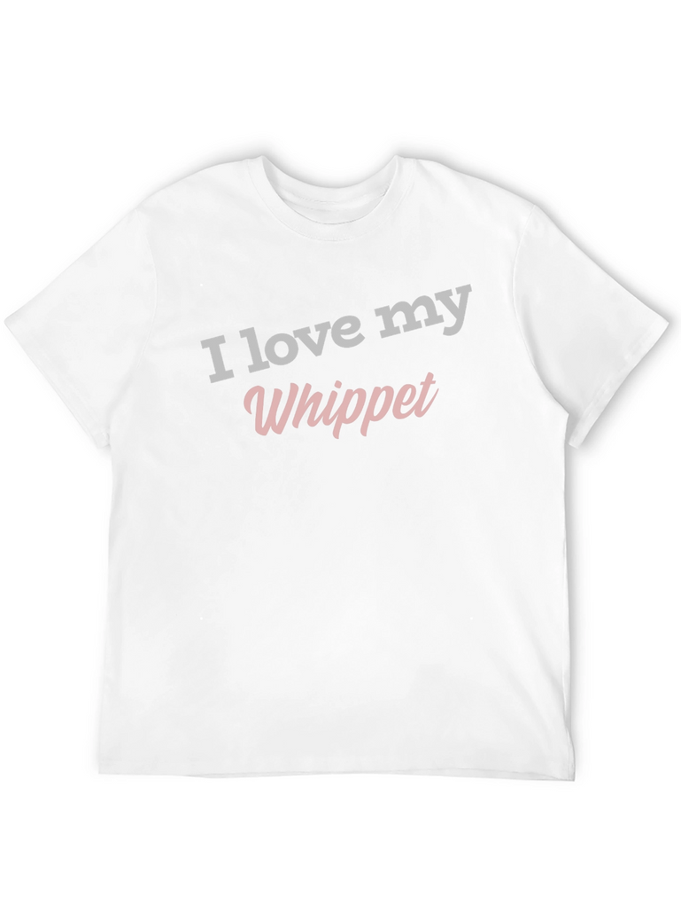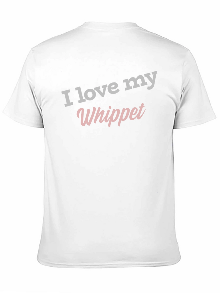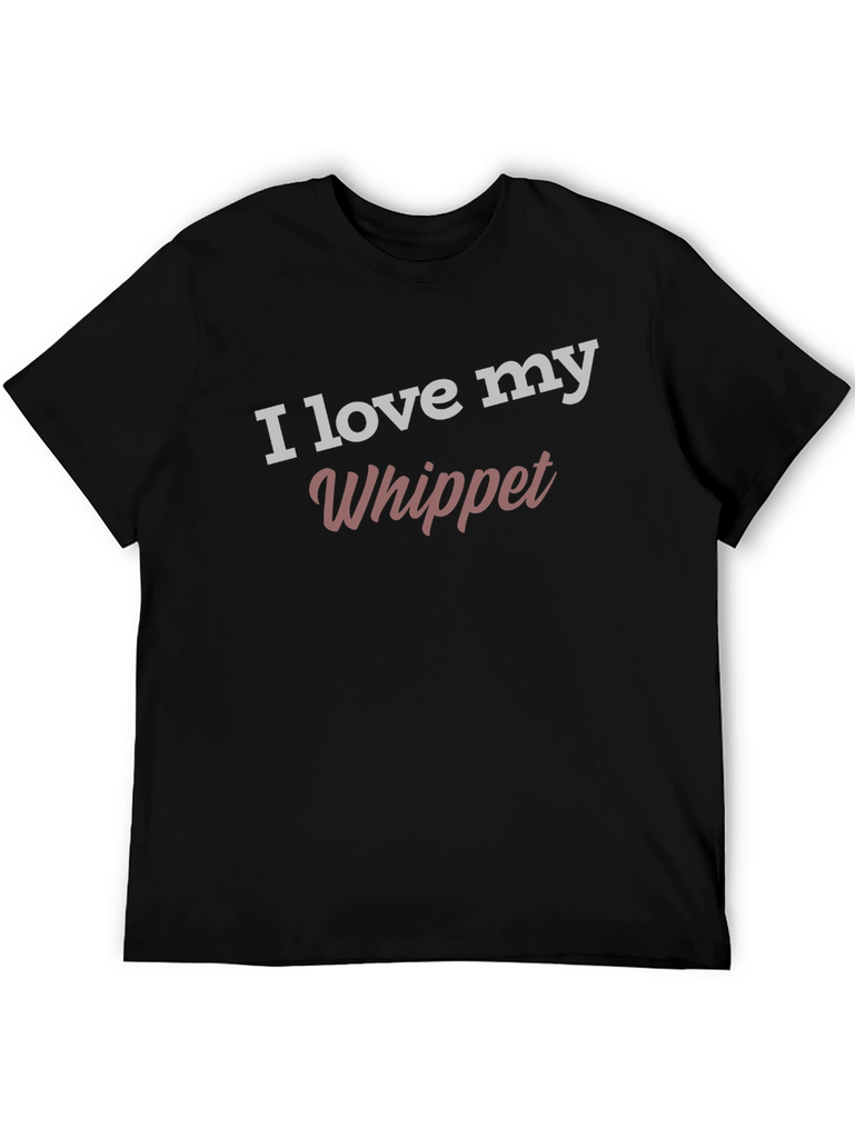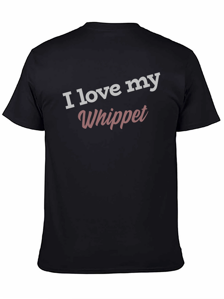 Show your love for your Whippet with this stylish and comfortable black t-shirt! Featuring the phrase "I love my Whippet" in a trendy, eye-catching font, this tee is perfect for casual wear. The shirt is a classic crew neck style. It's a soft fabric, perfect for everyday wear. Wear it to the dog park, running errands, or lounging at home. It's a great way to express your passion for your furry friend.
