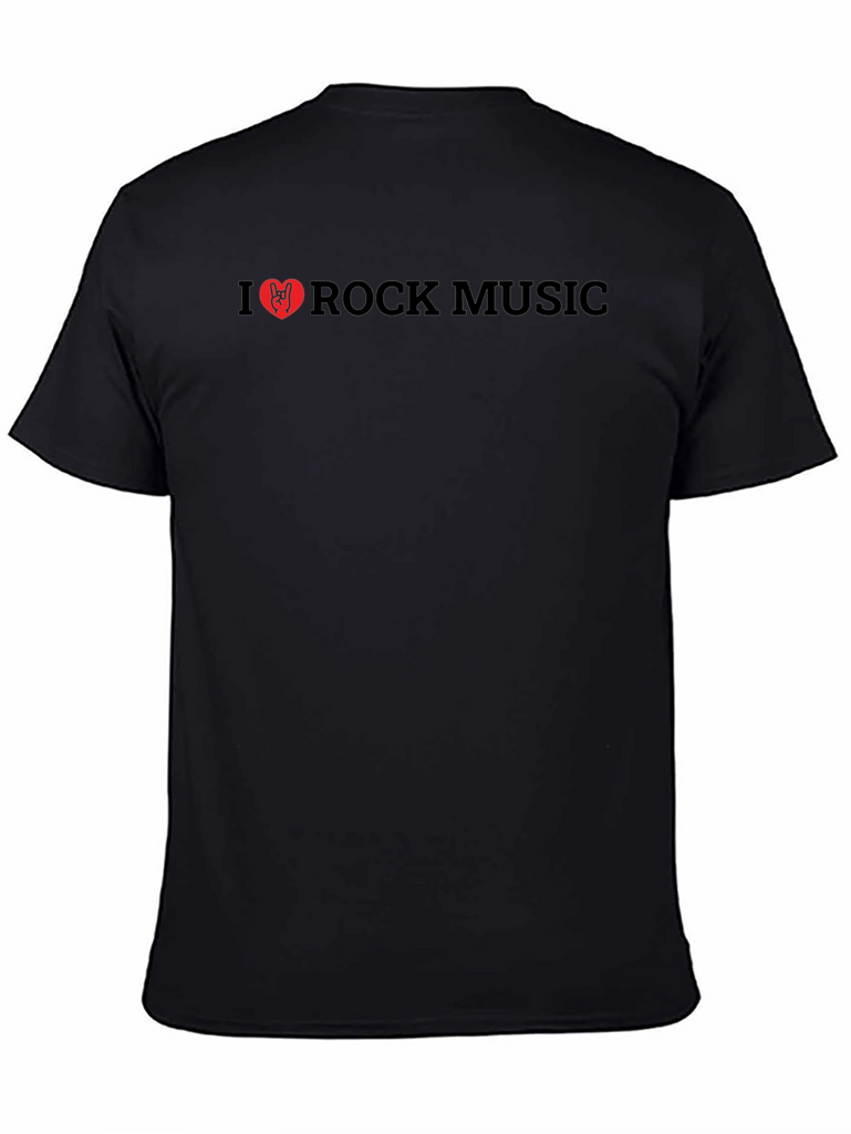 Show your love for rock music with this stylish black t-shirt. Featuring a bold graphic that says "I ❤️ ROCK MUSIC," with a rock-on hand symbol inside the heart, this tee is perfect for casual wear or attending your favorite concerts. The classic fit and soft fabric ensure all-day comfort. Whether you're jamming out with friends or just expressing your musical taste, this shirt is a must-have for any rock enthusiast. Get yours today and let the world know where your heart beats!