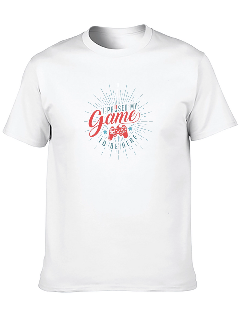 This black t-shirt features a playful and eye-catching design for gaming enthusiasts. The graphic showcases the phrase "I Paused My Game To Be Here" in a stylized font, with a classic game controller incorporated into the design. It's perfect for expressing your love for gaming while maintaining a sense of humor. Made from a comfortable fabric blend, this short-sleeved tee offers a relaxed fit that's ideal for casual wear or gaming sessions. Wear it to gaming conventions, casual hangouts, or even family gatherings to showcase your passion. It is a fun and relatable statement piece for any gamer's wardrobe.