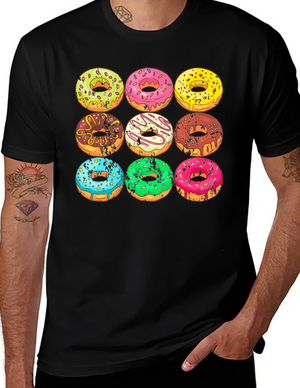 This fun t-shirt features the phrase 'I Run For Donuts' printed in a playful font. A donut graphic is incorporated into the design, adding a touch of whimsy. The shirt is black, offering a classic and versatile look. Made from a comfortable fabric, this t-shirt is perfect for casual wear. Whether you're a donut lover or just enjoy a humorous tee, this shirt is sure to be a hit. Wear it to the gym, while running errands, or just lounging at home. Makes a great gift for the donut enthusiast in your life.