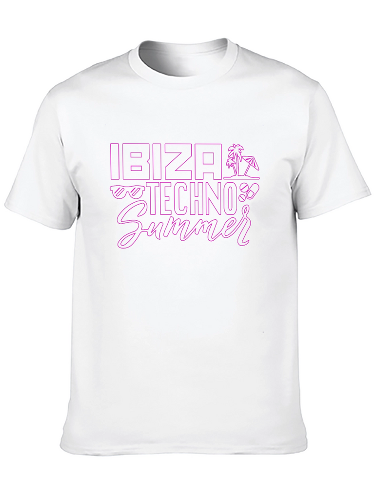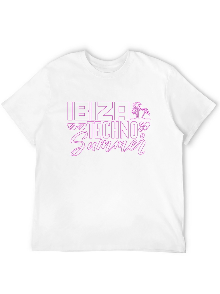 Get ready to party with this stylish Ibiza Techno Summer t-shirt. Made from comfortable, breathable fabric, this black tee features a vibrant purple graphic design with summer-themed icons. The eye-catching design is perfect for music festivals, beach parties, or casual everyday wear. Show off your love for Ibiza's techno scene with this unique and trendy t-shirt. Available in various sizes.