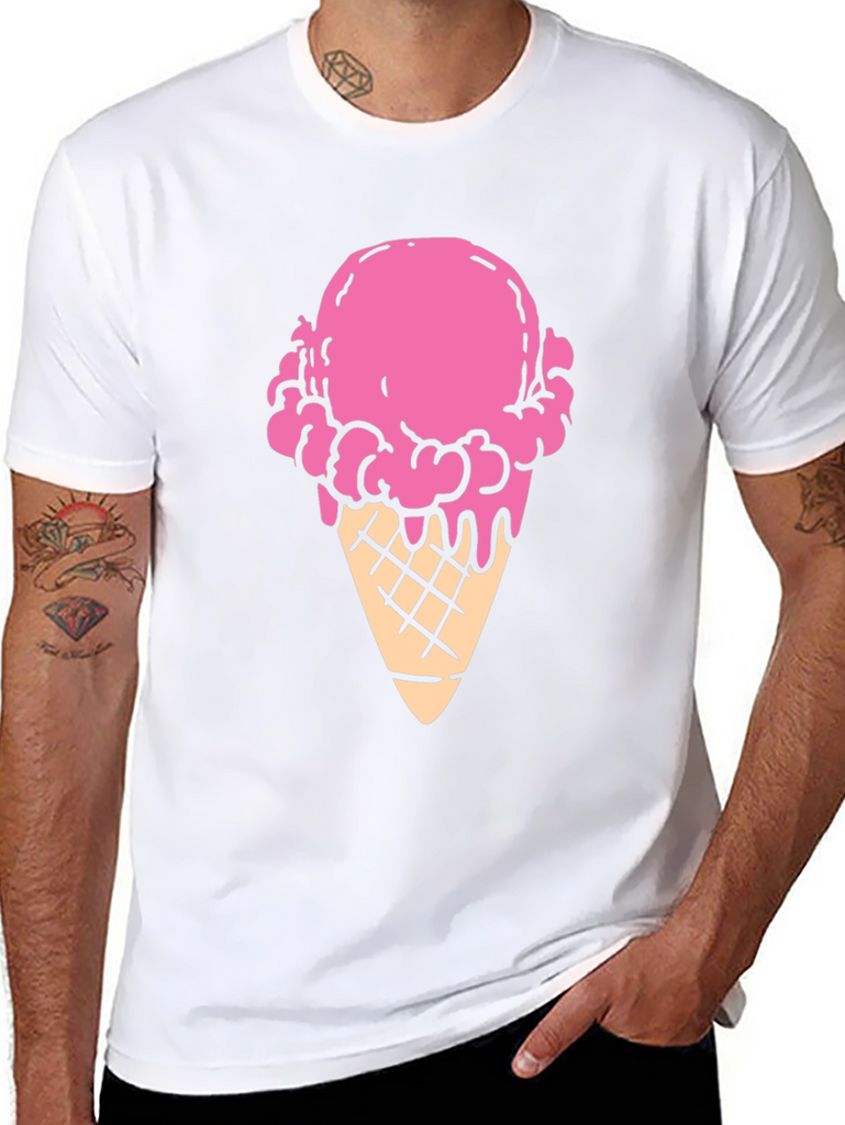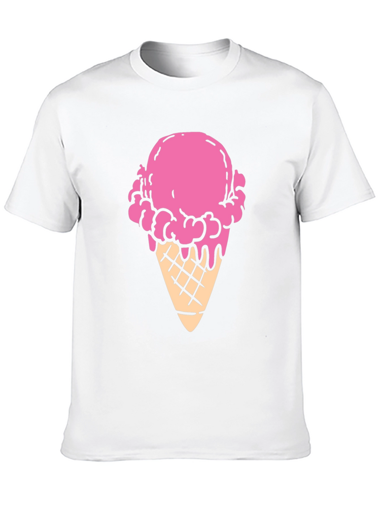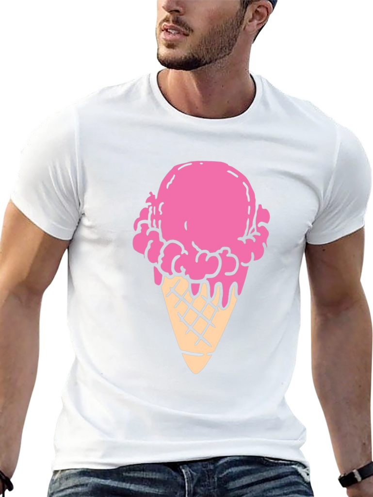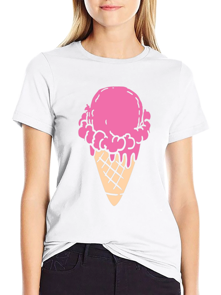 Indulge your style with this eye-catching black T-shirt featuring a vibrant ice cream cone graphic. The playful design showcases a scoop of pink ice cream nestled in a classic cone, complete with detailed lines for a touch of whimsy. Perfect for casual outings, summer events, or adding a fun twist to your everyday wardrobe. Made from comfortable, breathable fabric, this T-shirt ensures all-day comfort and a flattering fit. Stand out from the crowd and express your love for sweet treats with this unique and stylish tee. Get yours today!