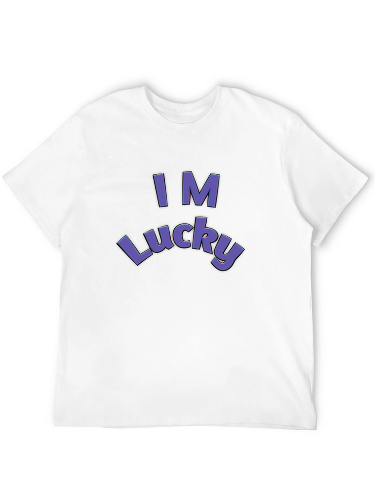 Show off your lucky side with this bold black t-shirt! Featuring a playful "I'm Lucky" graphic in a unique purple hue with eye-catching 3D effect, this tee is perfect for casual wear. The classic crew neck and short sleeves make it comfortable for everyday use. Made from a soft, breathable fabric, this shirt offers both style and comfort. Ideal for pairing with jeans, shorts, or casual pants. Whether you're feeling lucky or just want to make a statement, this t-shirt is a great addition to your wardrobe. Get yours today and let the world know you're feeling fortunate!