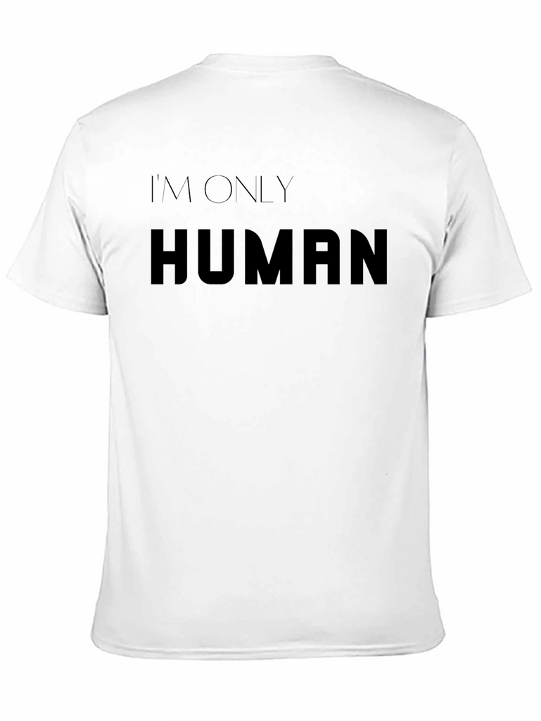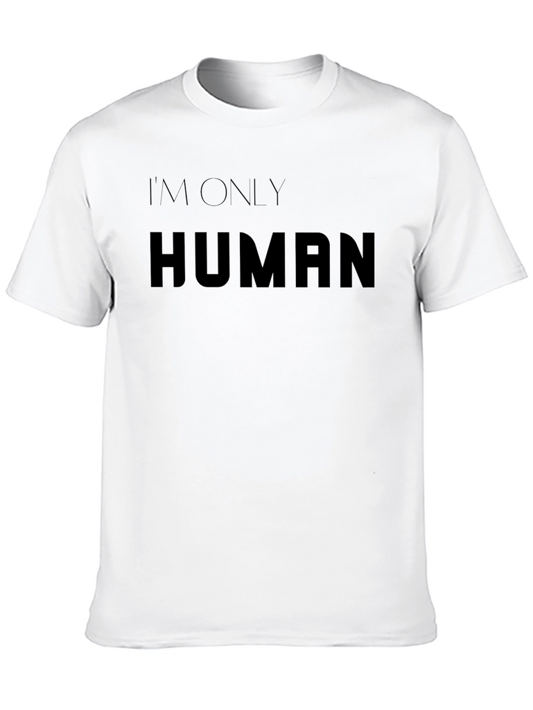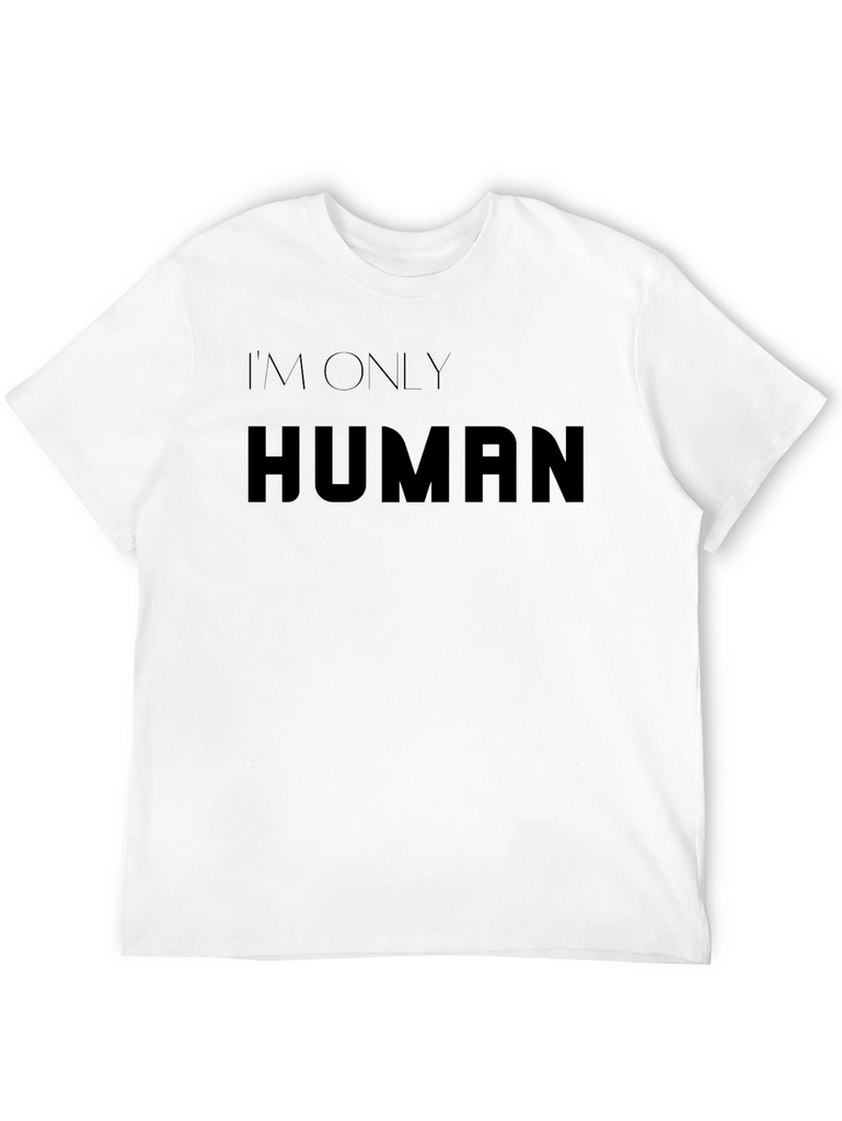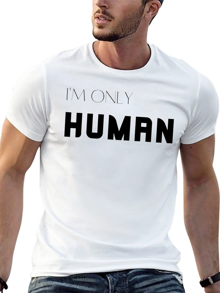 Showcase your relatable side with this classic black t-shirt featuring the bold statement 'I'm Only Human.' Crafted from what appears to be a soft, comfortable material, this tee offers a relaxed fit perfect for everyday wear. The minimalist design and classic cut make it a versatile addition to any wardrobe. Ideal for casual outings, social gatherings, or simply lounging at home, this t-shirt allows you to express yourself with ease. Pair it with jeans, shorts, or your favorite casual bottoms for a stylish and comfortable look. Embrace your humanity in style with this must-have tee!