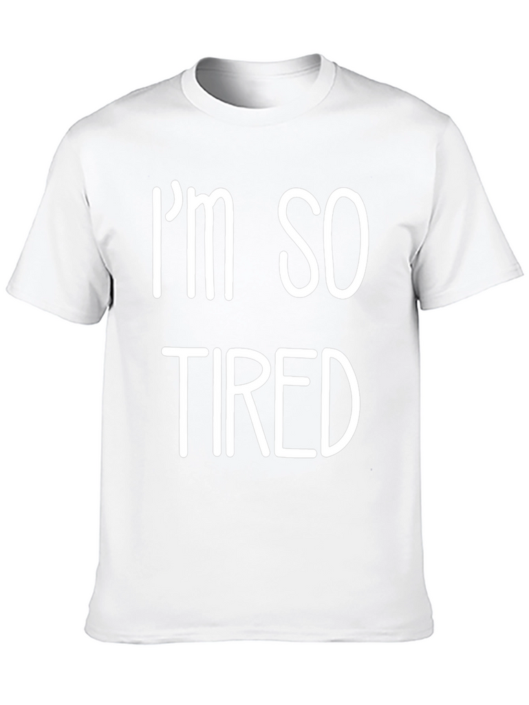 Show off your mood with this soft and comfortable black t-shirt! The shirt features the phrase "I'm So Tired" in bold, white letters across the chest. Made from what looks like a breathable cotton blend, this tee is perfect for lounging at home, running errands, or casual outings. The classic crew neck and short sleeves offer a relaxed fit. This tee is a humorous and stylish way to express yourself. Makes a great gift for the perpetually tired!