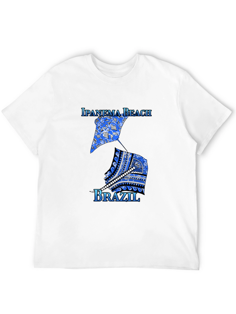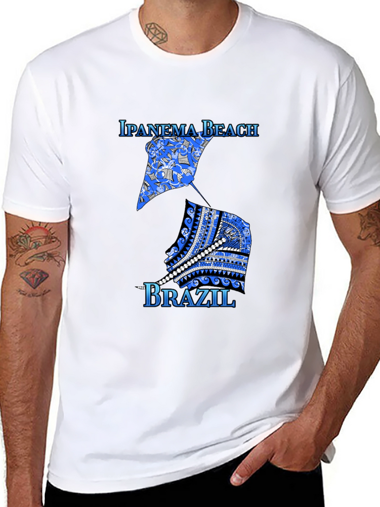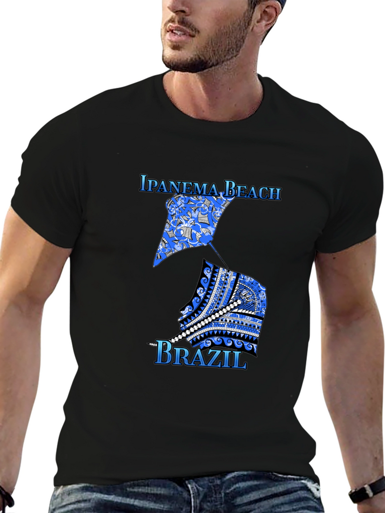 Show your love for Ipanema Beach with this stylish black t-shirt. The eye-catching design features a unique graphic of Ipanema Beach and Brazil in a vibrant blue pattern. Made from comfortable material, this tee is perfect for everyday wear or your next vacation. This t-shirt is sure to turn heads. Whether you're strolling along the beach or exploring the city, this t-shirt is a must-have for any travel enthusiast.