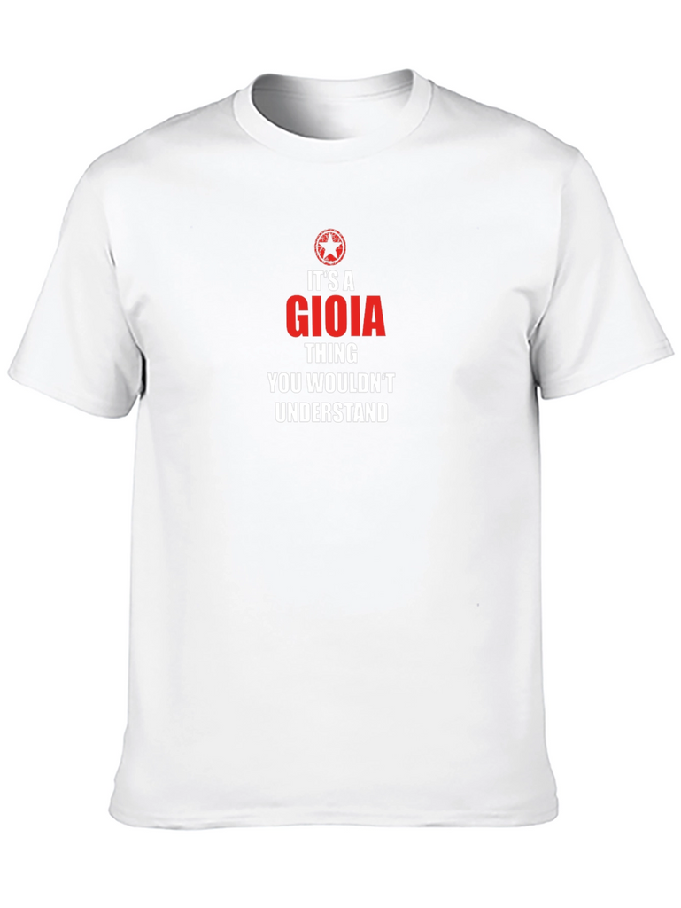 This classic black tee features a humorous statement: "It's a Gioia Thing You Wouldn't Understand". This statement is printed in bold, red lettering. A cool graphic with a star adds to the design's appeal. Crafted from comfortable material, this t-shirt offers both style and comfort. It's perfect for casual outings, family gatherings, or simply lounging at home. Show off your unique identity with this fun and relatable t-shirt. Makes a great gift for Gioias everywhere!