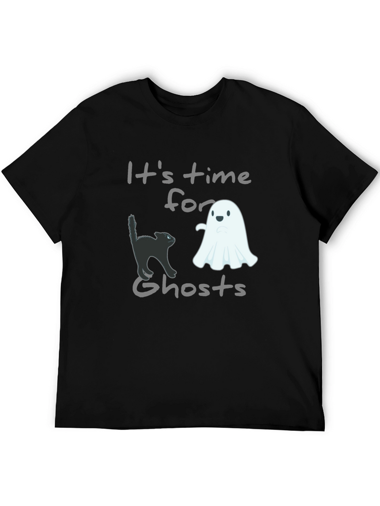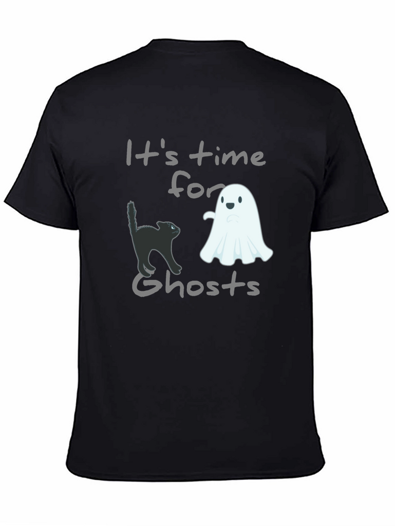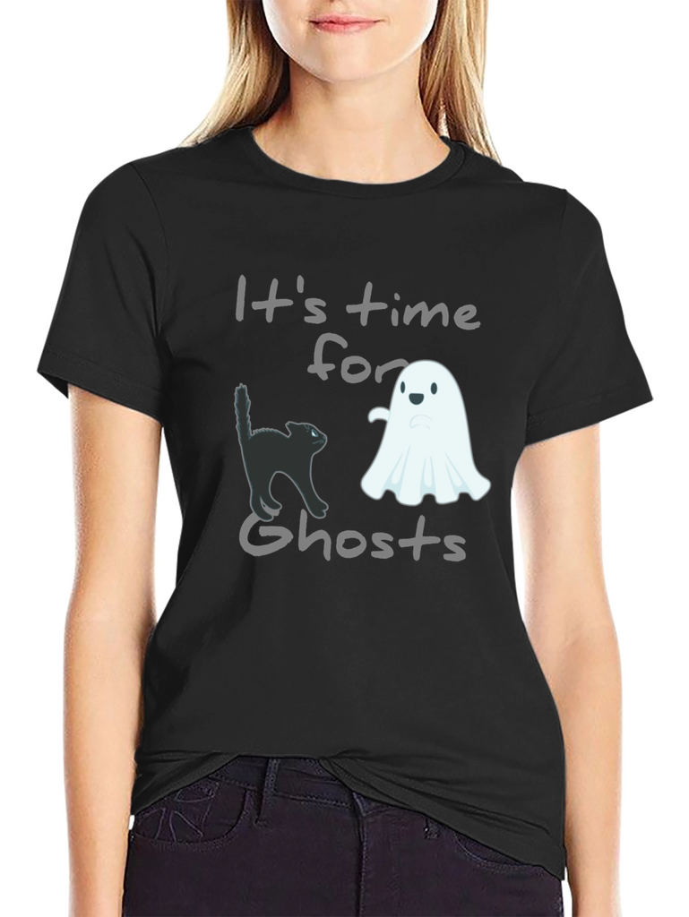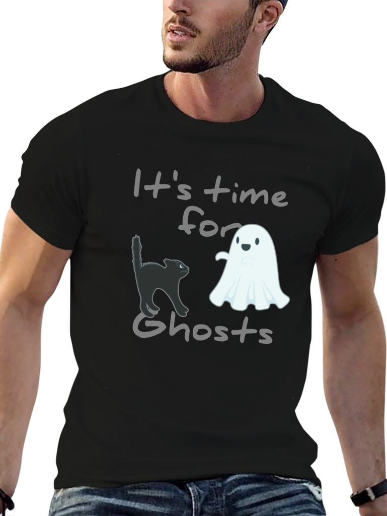 Get ready for Halloween with this fun "It's Time for Ghosts" t-shirt. The shirt features a cartoon-style black cat and a friendly ghost graphic on a solid black background. Made from a comfortable, breathable fabric, this tee is perfect for Halloween parties, trick-or-treating, or casual everyday wear. The design is playful and festive, making it a great choice for those who love to celebrate the spooky season. Show off your Halloween spirit in style with this unique and eye-catching t-shirt.