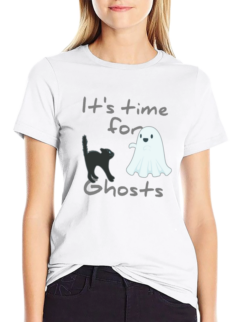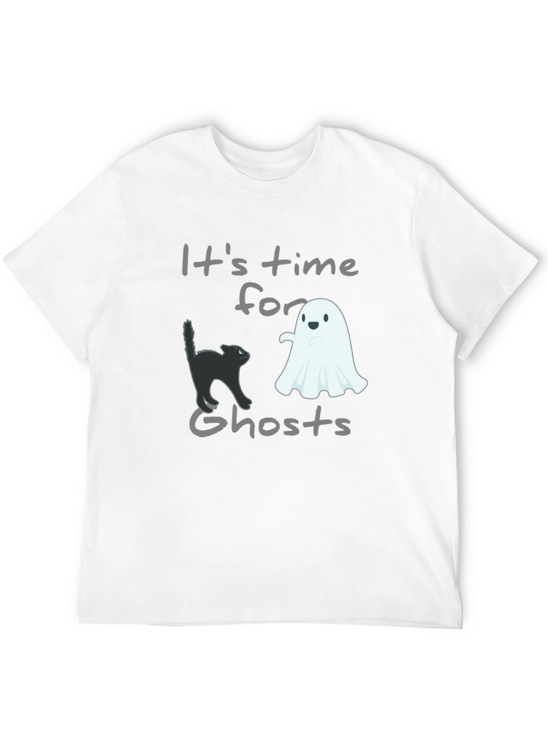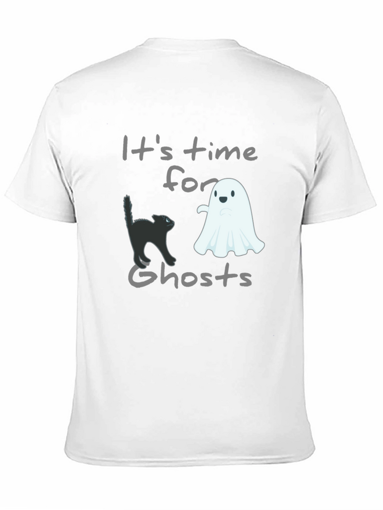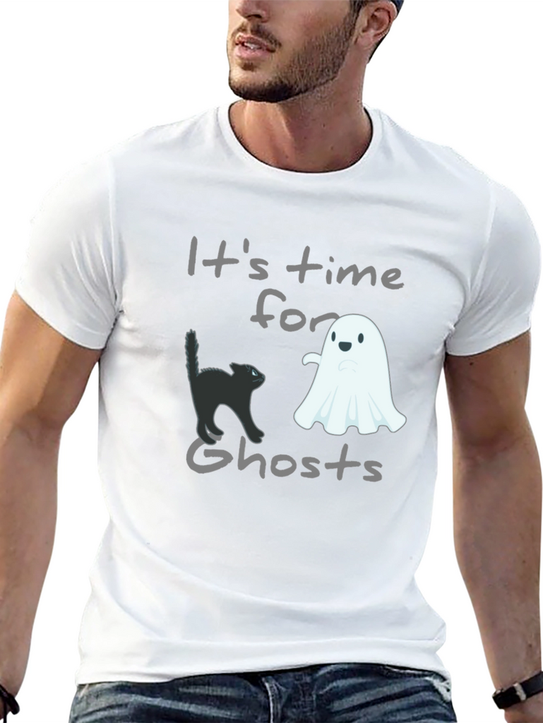 Get ready for Halloween with this fun "It's Time for Ghosts" t-shirt. The shirt features a cartoon-style black cat and a friendly ghost graphic on a solid black background. Made from a comfortable, breathable fabric, this tee is perfect for Halloween parties, trick-or-treating, or casual everyday wear. The design is playful and festive, making it a great choice for those who love to celebrate the spooky season. Show off your Halloween spirit in style with this unique and eye-catching t-shirt.