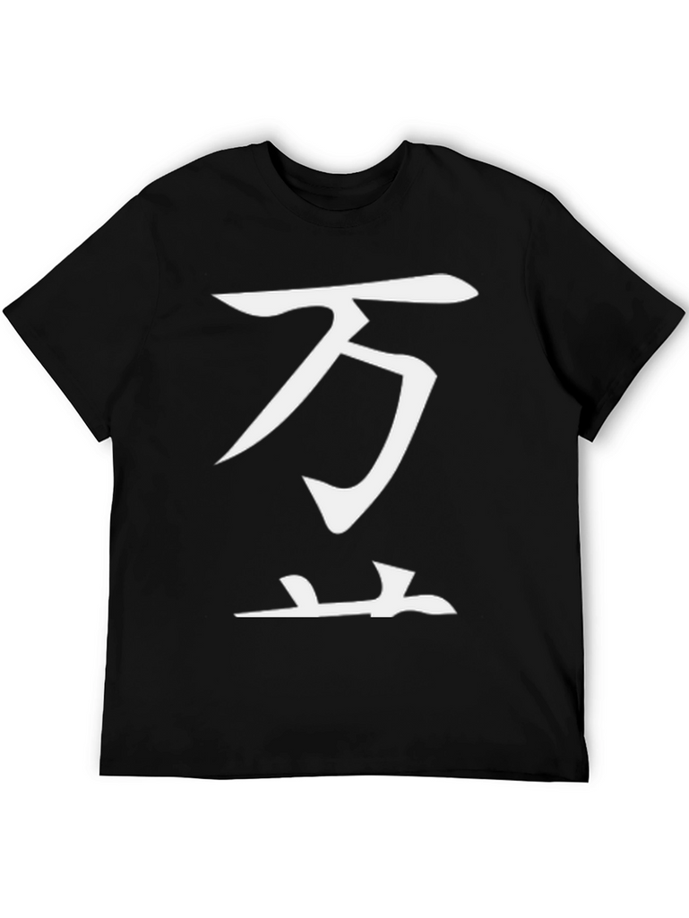 This black t-shirt features a bold, white Japanese Kanji symbol design prominently displayed on the front. The graphic is simple yet striking, providing a unique and stylish look. Made from what appears to be a soft and comfortable cotton blend, this tee is perfect for everyday wear. The classic crew neck and short sleeves offer a relaxed fit. Ideal for those interested in Japanese culture, language, or unique graphic tees, this shirt is sure to become a favorite. Wear it casually with jeans or dress it up with a jacket. A comfortable and eye-catching addition to any wardrobe.