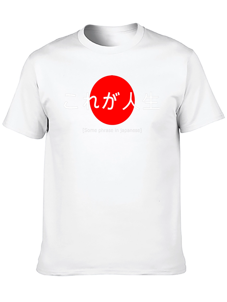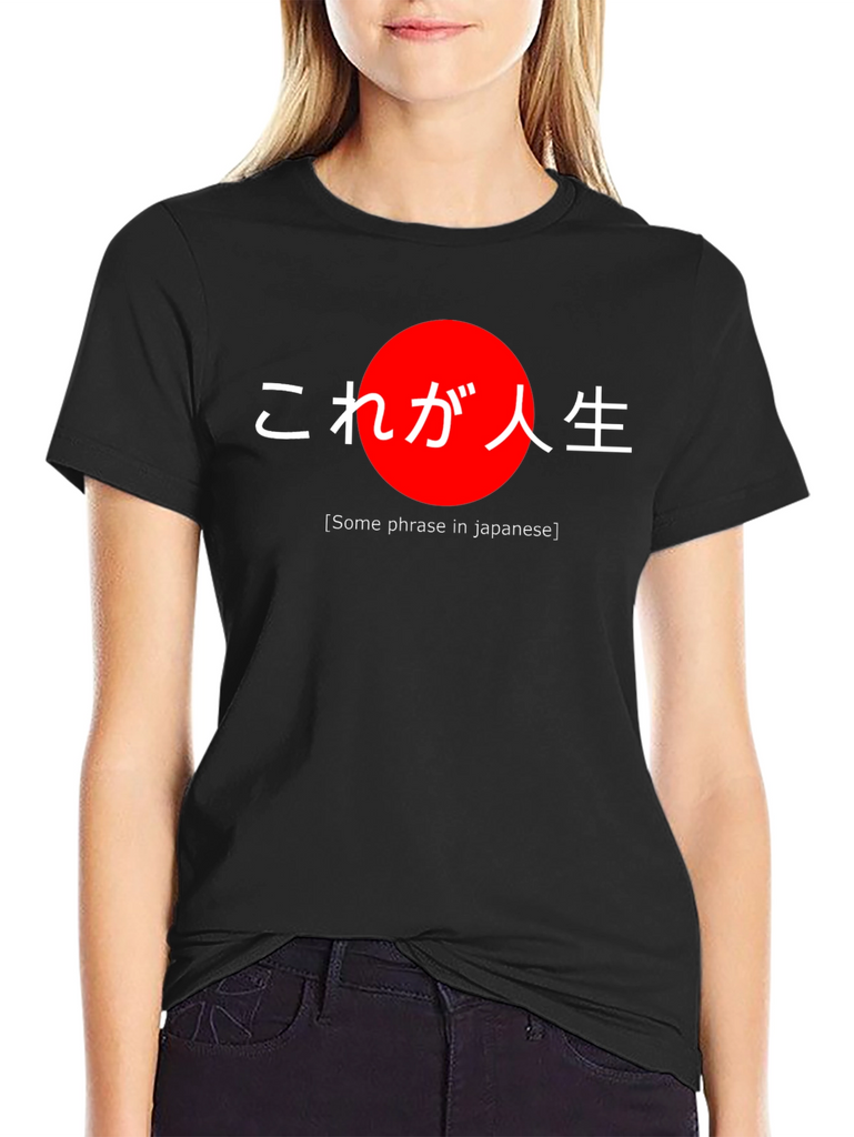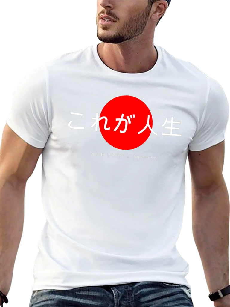Showcase your unique style with this eye-catching black t-shirt featuring a striking Japanese-inspired design. The graphic incorporates a vibrant red circle accentuating Japanese text. The phrase translates to "This is Life". Made from a soft, comfortable fabric, this tee offers a relaxed fit, ideal for everyday wear. Whether you're a fan of Japanese culture, a language enthusiast, or simply appreciate stylish designs, this t-shirt is a perfect addition to your wardrobe. Pair it with jeans or shorts for a casual look, or dress it up with a jacket for a night out. Grab yours now and make a statement!