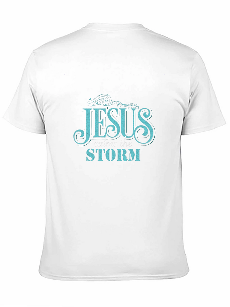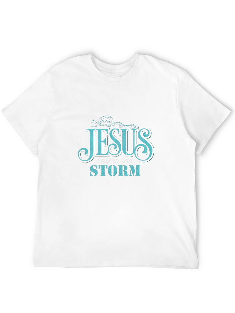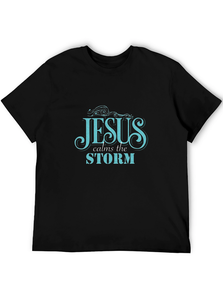 This classic black t-shirt features a stylish and eye-catching graphic design. The phrase "Jesus Calms the Storm" is prominently displayed in a beautiful, stylized font, suggesting a message of peace and faith. The t-shirt appears to be made from a soft, comfortable material, perfect for everyday wear. Ideal for expressing personal beliefs or as a thoughtful gift, this t-shirt can be worn casually or dressed up with a jacket. Its message makes it a great conversation starter and a source of inspiration. Embrace comfort and faith with this unique tee.