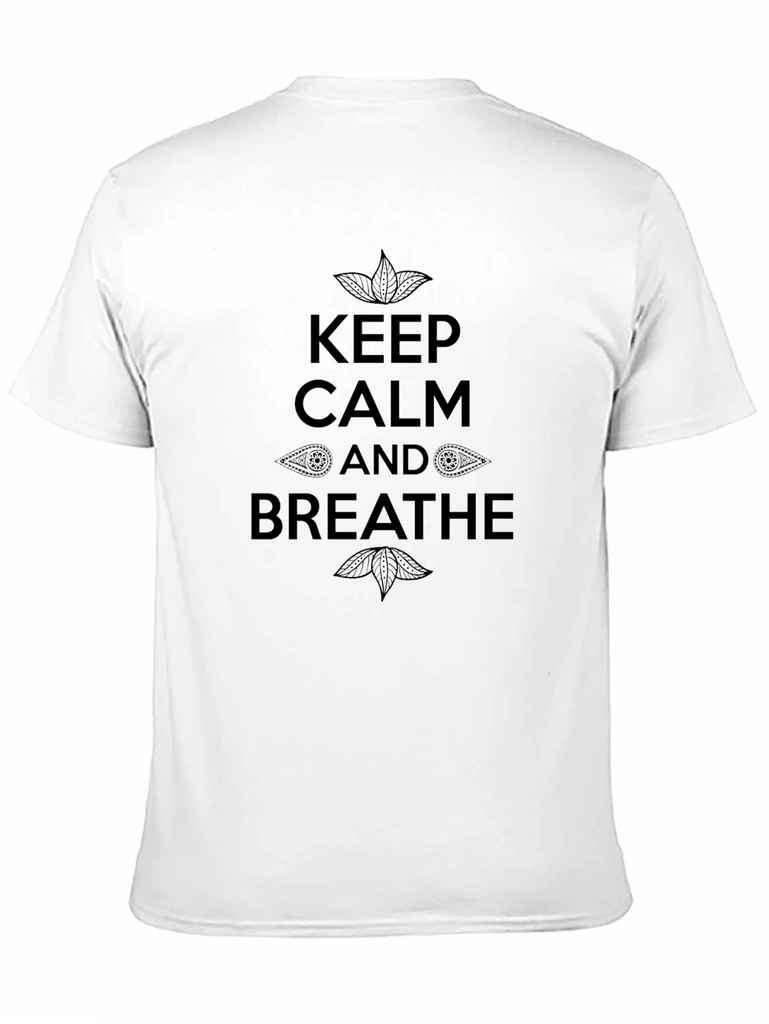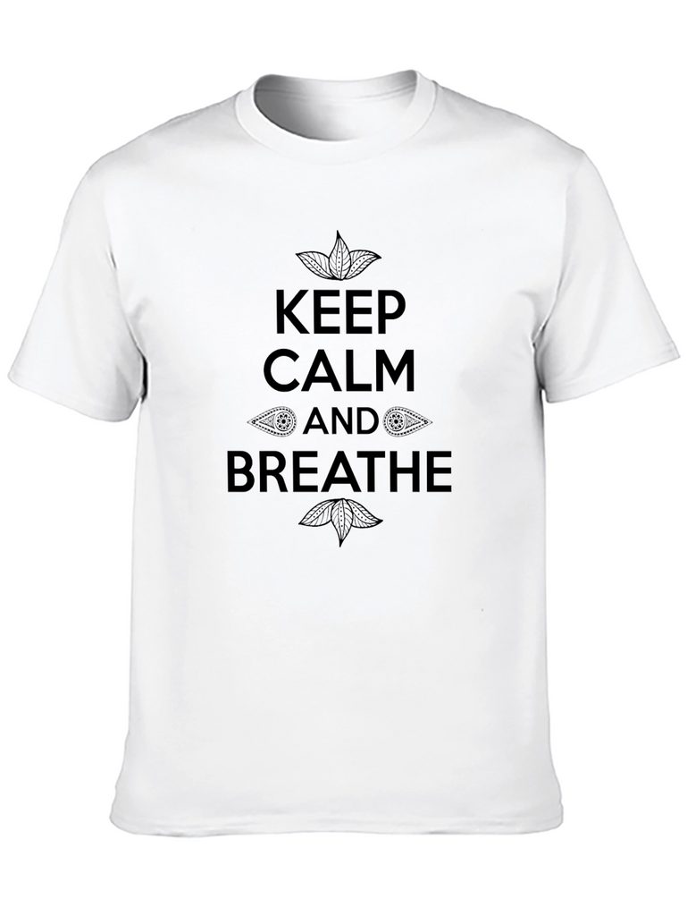 Find your inner peace with this stylish black t-shirt. Featuring the text "Keep Calm and Breathe" with decorative accents. The design promotes relaxation and mindfulness. Perfect for yoga, meditation, or everyday wear. The soft, comfortable fabric ensures a great fit and feel. A unique and meaningful addition to your wardrobe.