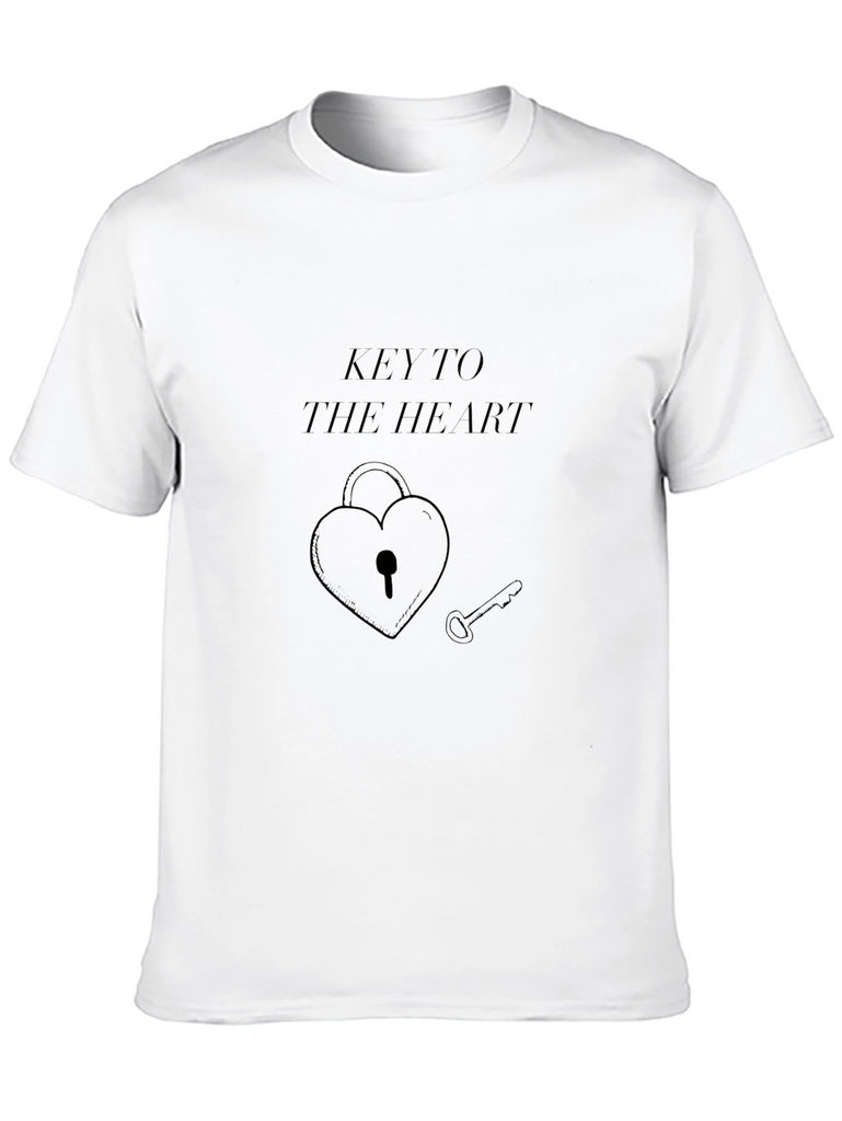 Unlock your style with this eye-catching black graphic tee. Featuring a unique design of a heart-shaped lock with a key, accompanied by the phrase "Key to the Heart", this shirt is perfect for expressing your personality. The tee appears to be made of a soft, comfortable fabric, and its versatile black color makes it easy to pair with any outfit. Wear it casually with jeans or dress it up with a blazer – this tee is sure to make a statement. Ideal for everyday wear or as a thoughtful gift for someone special.