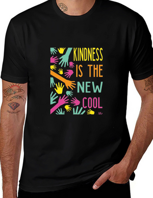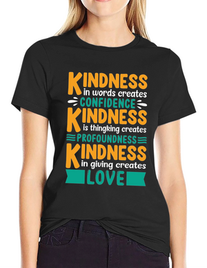 Show your support with this stylish black tee! Featuring a bold 'KINDNESS' rainbow graphic with distressed detail, this shirt is sure to make a statement. The design incorporates vibrant rainbow stripes and a sun graphic. Made from soft fabric, this tee offers both comfort and durability. Ideal for casual wear, pride events, or simply spreading a positive message. Get yours today and let kindness shine!