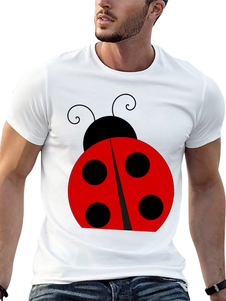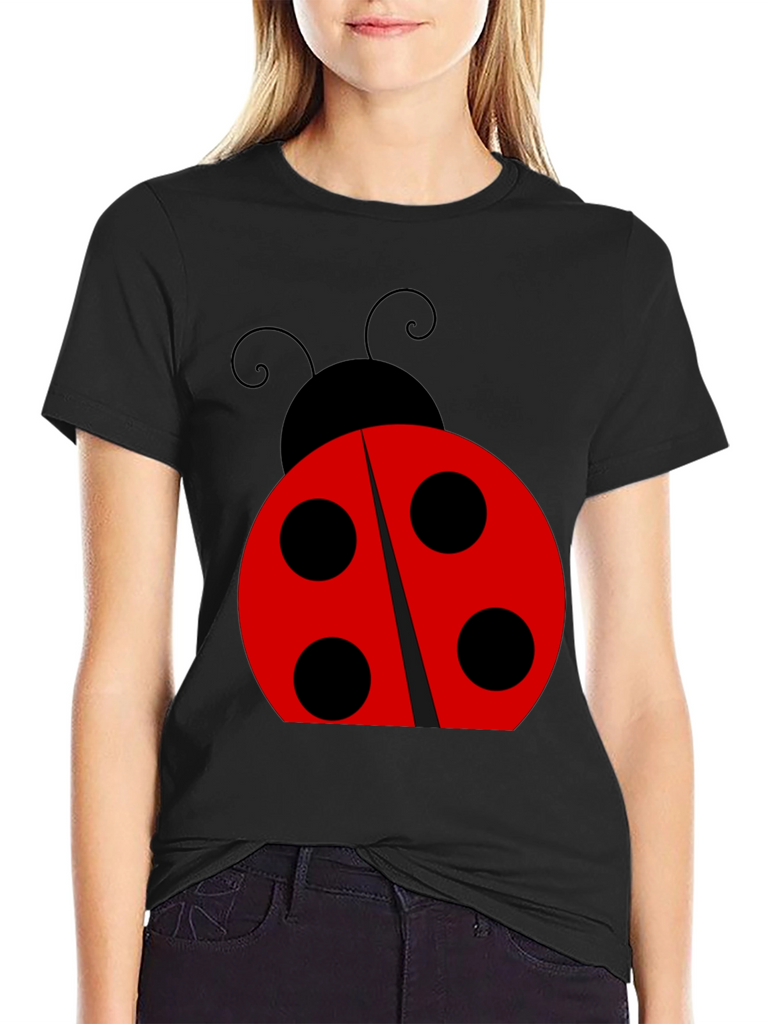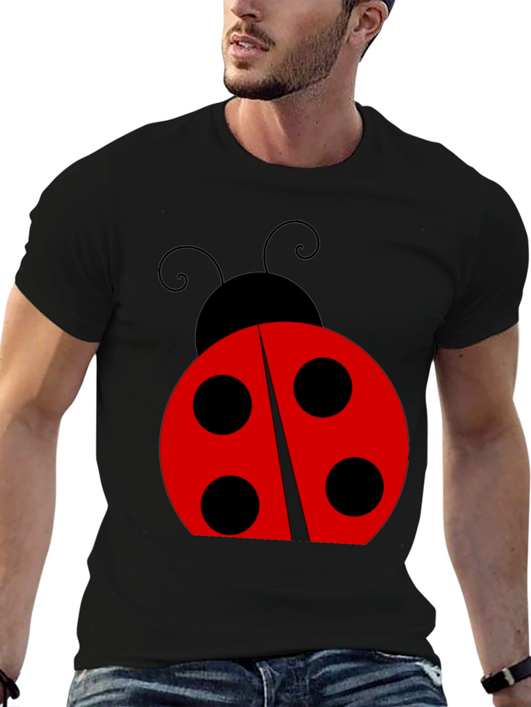This stylish black t-shirt features a bold and playful ladybug graphic. The design includes a bright red body with classic black spots, a black head, and whimsical antennae. Made from a comfortable-looking fabric, this tee is perfect for casual wear, adding a touch of fun to any outfit. Ideal for everyday wear, festivals, or as a novelty gift, this t-shirt is sure to turn heads and spark conversations. Embrace your love for nature and stand out in this eye-catching design!