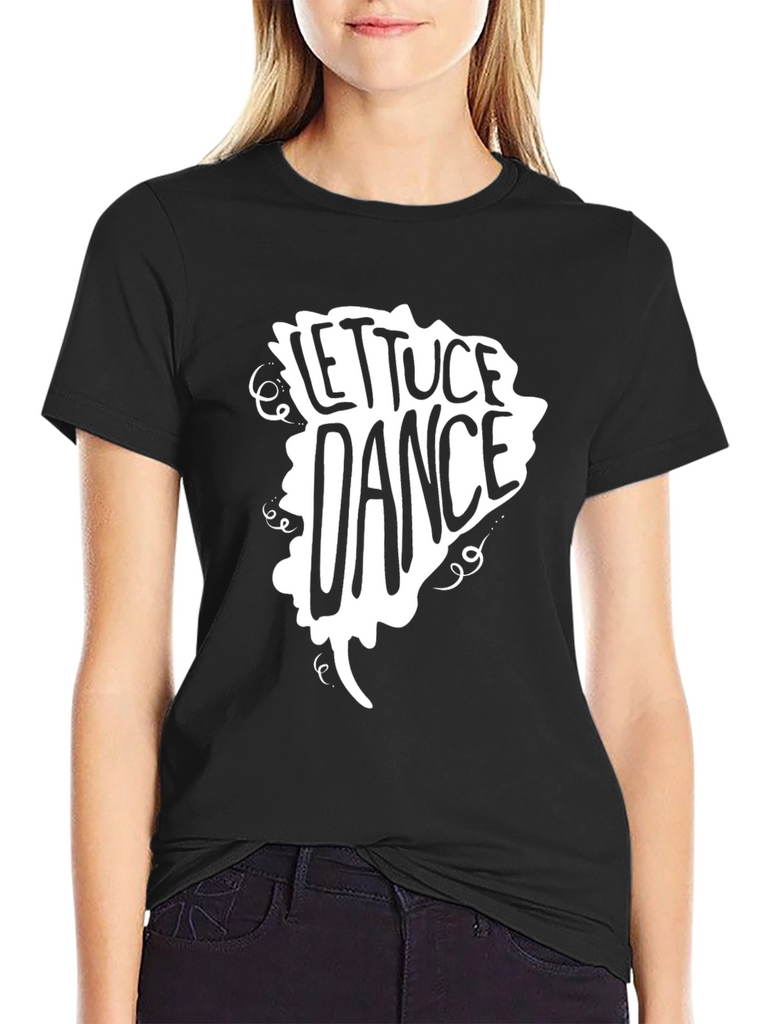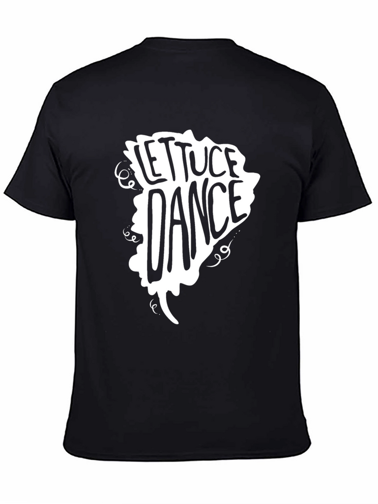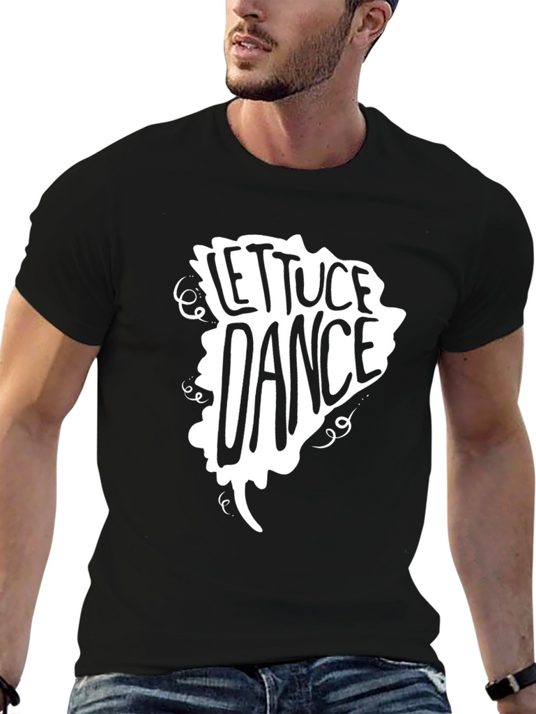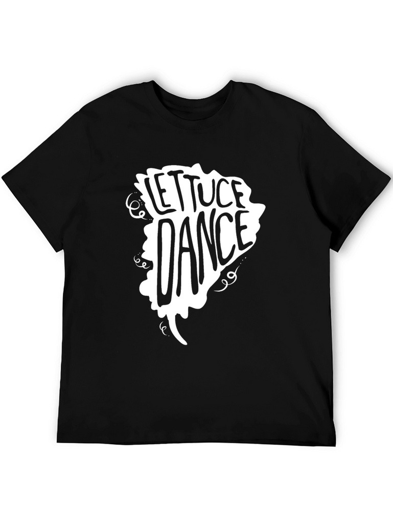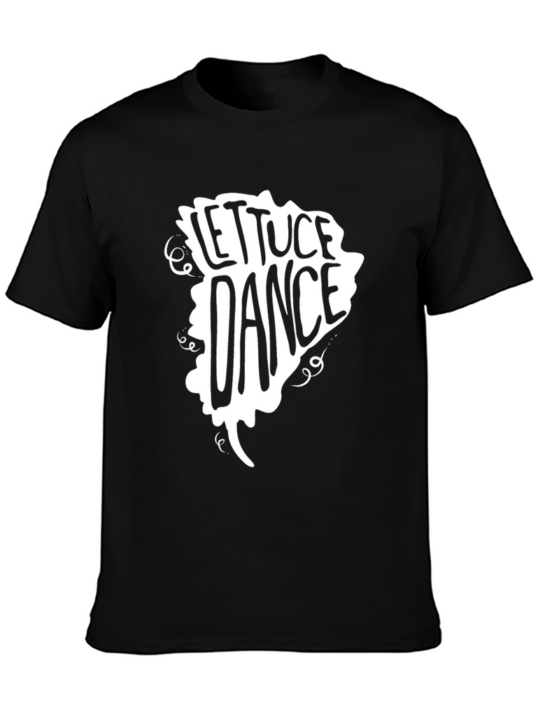 Show off your fun side with this stylish black graphic t-shirt! Featuring the playful phrase "Lettuce Dance" in a unique white design, this tee is perfect for expressing your personality. The classic crew neck and short sleeves make it a comfortable and versatile choice for everyday wear. Made from soft, breathable fabric, this t-shirt is ideal for casual outings, dance classes, or just lounging around. Let your wardrobe reflect your lively spirit with this eye-catching and conversation-starting piece. A must-have for anyone with a love of puns and a sense of humor!