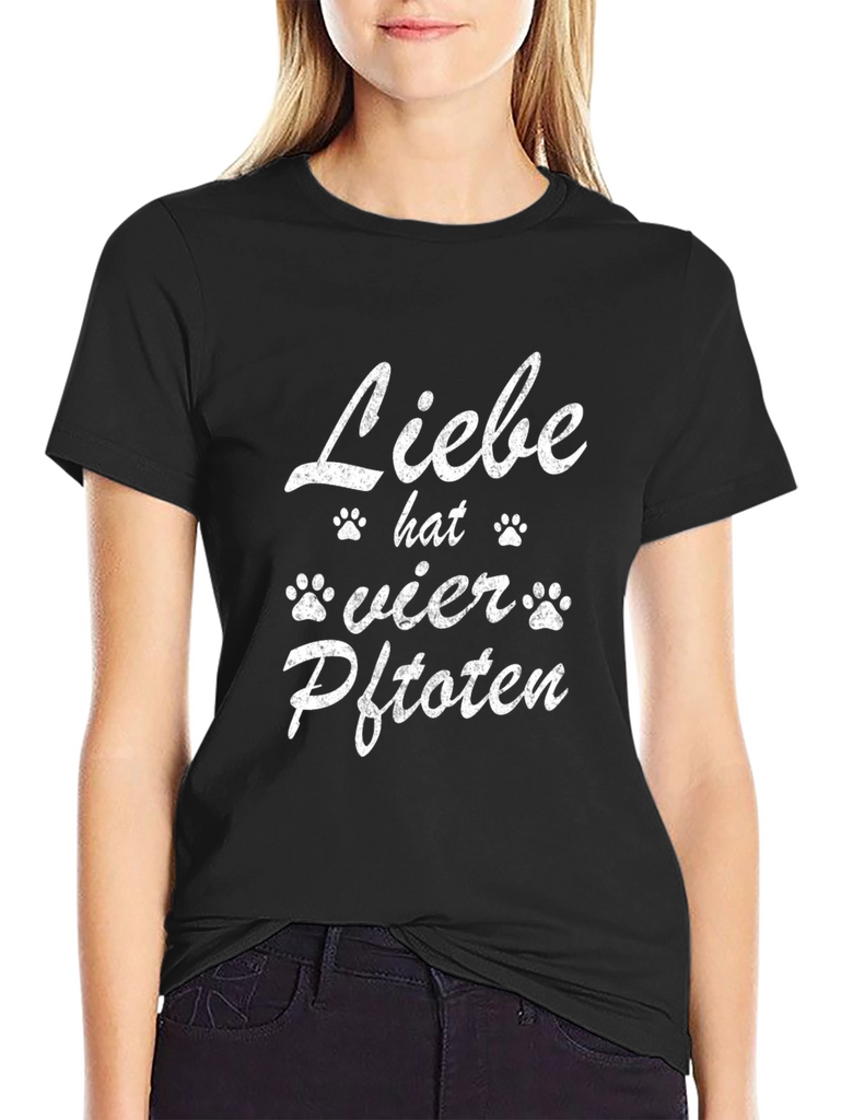 Show your love for your furry friends with this stylish black t-shirt! Featuring the phrase "Liebe hat vier Pfoten" (Love has four paws) in a whimsical, distressed white font, this tee is perfect for dog lovers. The design also incorporates cute paw print graphics, adding to its charm. Made from a comfortable-looking material, this shirt is great for everyday wear, casual outings, or even as a gift for the pet enthusiast in your life. Get yours today and let everyone know that love comes with four paws!