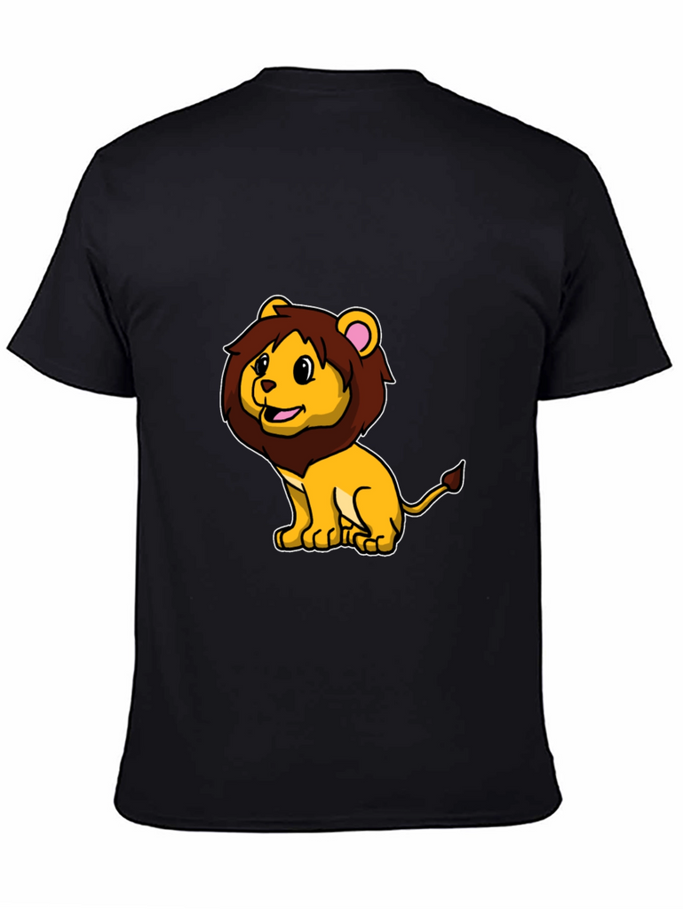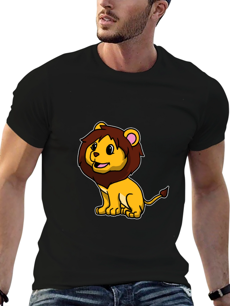 Show off your love for animals with this fun, casual black t-shirt. Featuring a vibrant, cartoon-style lion graphic, this shirt is perfect for adding a playful touch to your everyday wardrobe. The design showcases a cheerful lion with a distinctive mane, making it a great conversation starter. Made from what appears to be soft and comfortable fabric, this tee is ideal for casual outings, lounging at home, or as a fun gift for animal lovers. Its classic fit ensures a relaxed and flattering look for everyone. Pair it with jeans, shorts, or leggings for a stylish and comfortable ensemble.