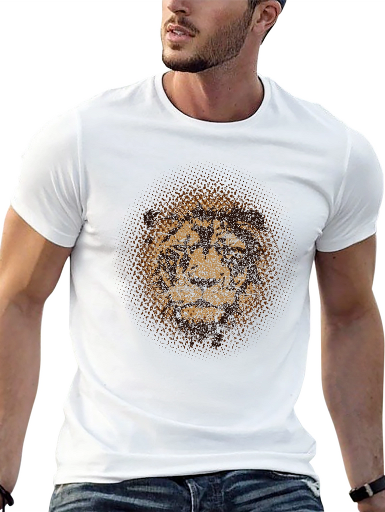 Show off your wild side with this striking t-shirt! Crafted from a soft, breathable fabric, this tee features a bold graphic print of a lion's face in a unique halftone style. The classic crew neck and short sleeves make it a versatile piece for casual wear. Pair it with jeans or shorts for an effortlessly cool look. Ideal for everyday wear, concerts, or expressing your individual style. Make a statement without saying a word!