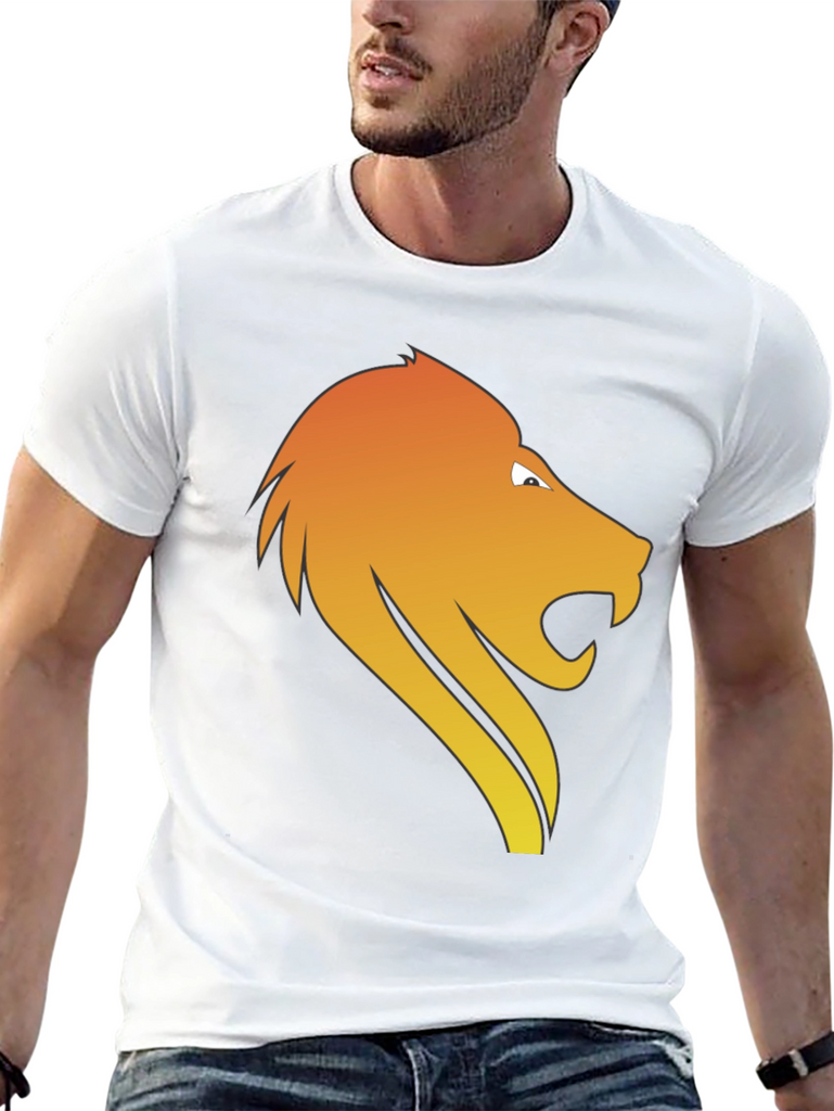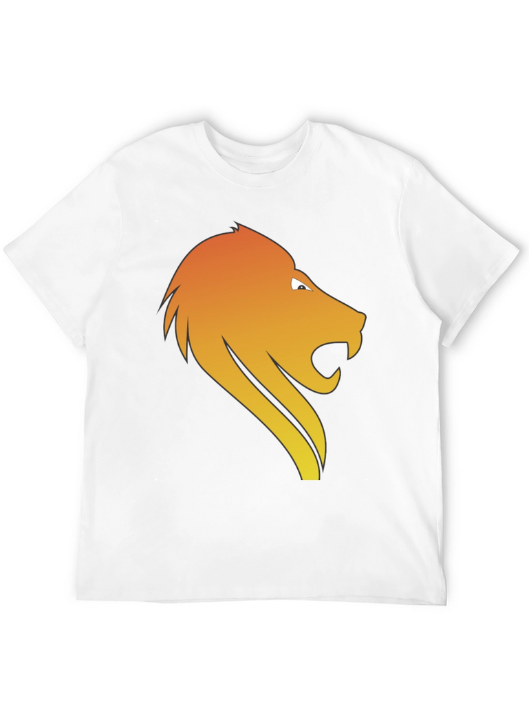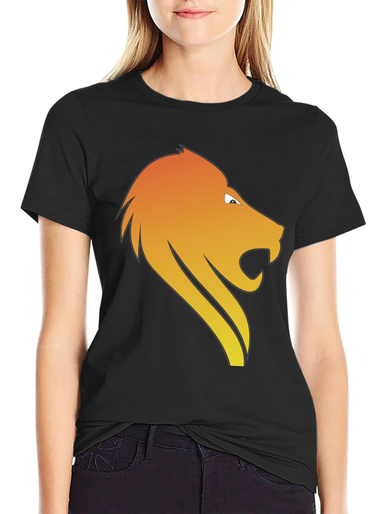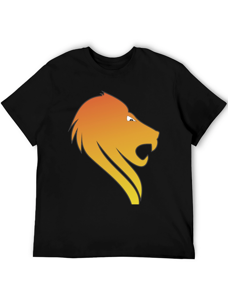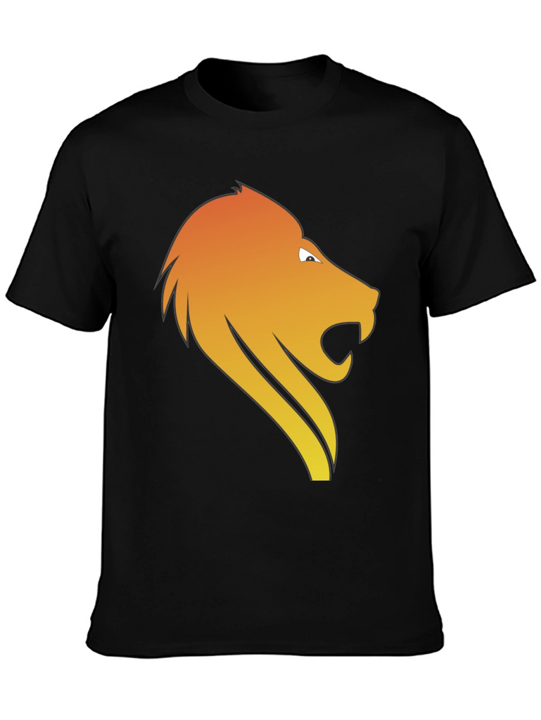 Roar with style in this eye-catching black t-shirt. Featuring a striking, stylized lion graphic in shades of vibrant orange and yellow, this tee is perfect for making a bold statement. Crafted from a comfortable cotton blend, it offers a soft feel and relaxed fit for everyday wear. The short sleeves and classic crew neck make it a versatile piece that can be dressed up or down. Ideal for casual outings, concerts, or simply lounging in style. Show off your wild side with this unique and fashionable t-shirt!