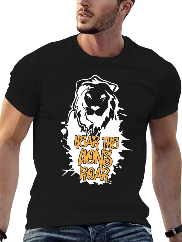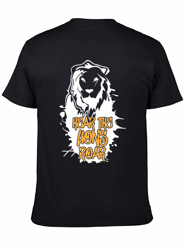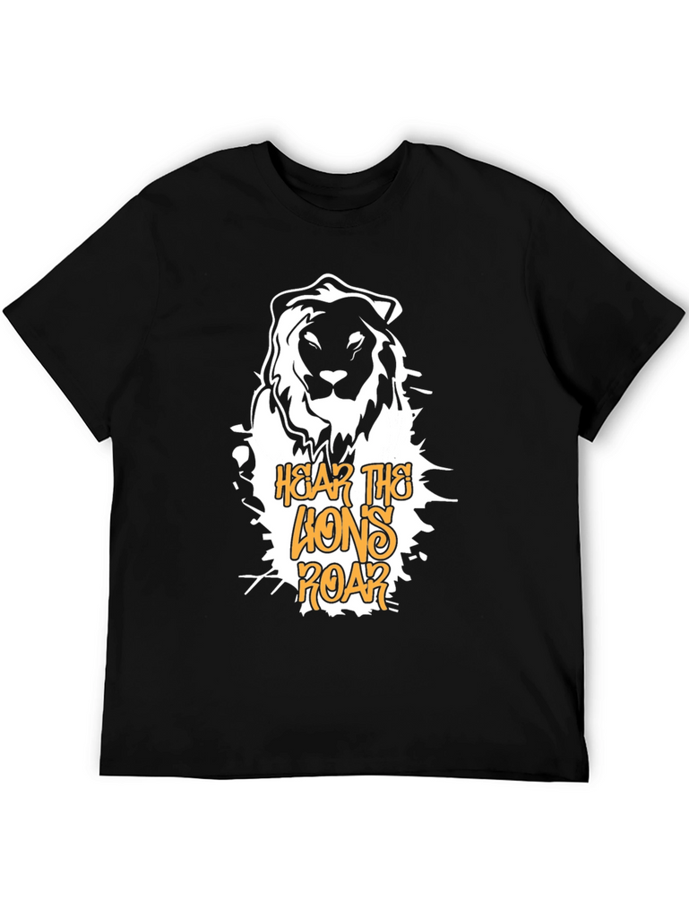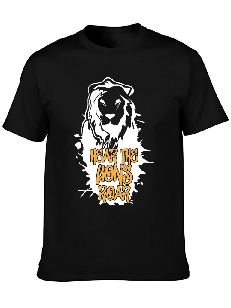 Unleash your inner wild with this striking black cotton tee! Featuring a bold, stylized lion graphic with the powerful message "Hear the Lion's Roar" in a vibrant yellow, this shirt is sure to make a statement. The design is printed on a comfortable, high-quality black cotton fabric that's perfect for everyday wear. Show off your fearless style or gift it to the king of your jungle! Ideal for casual outings, concerts, or anyone looking to add a touch of fierce personality to their wardrobe. Get ready to roar!