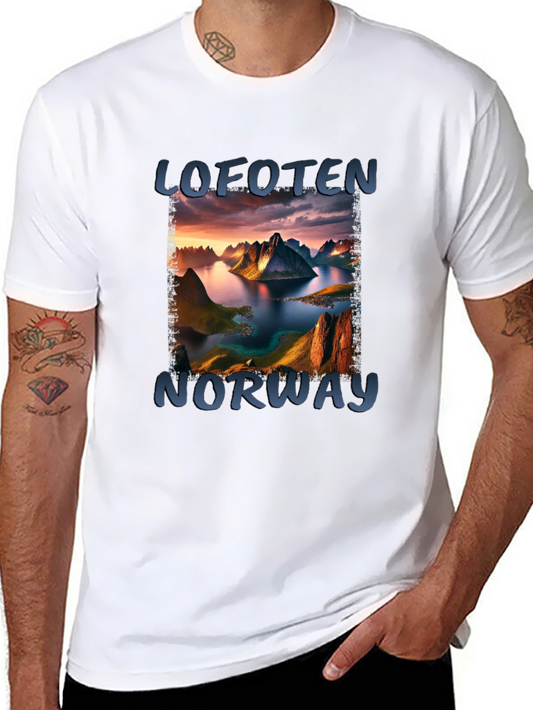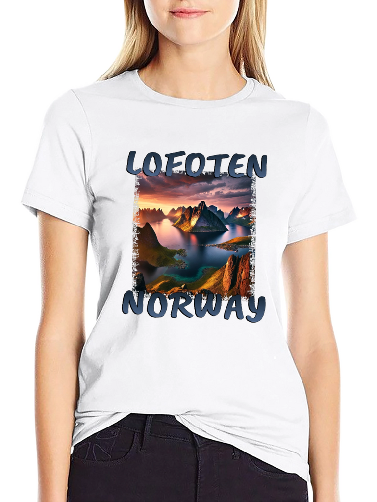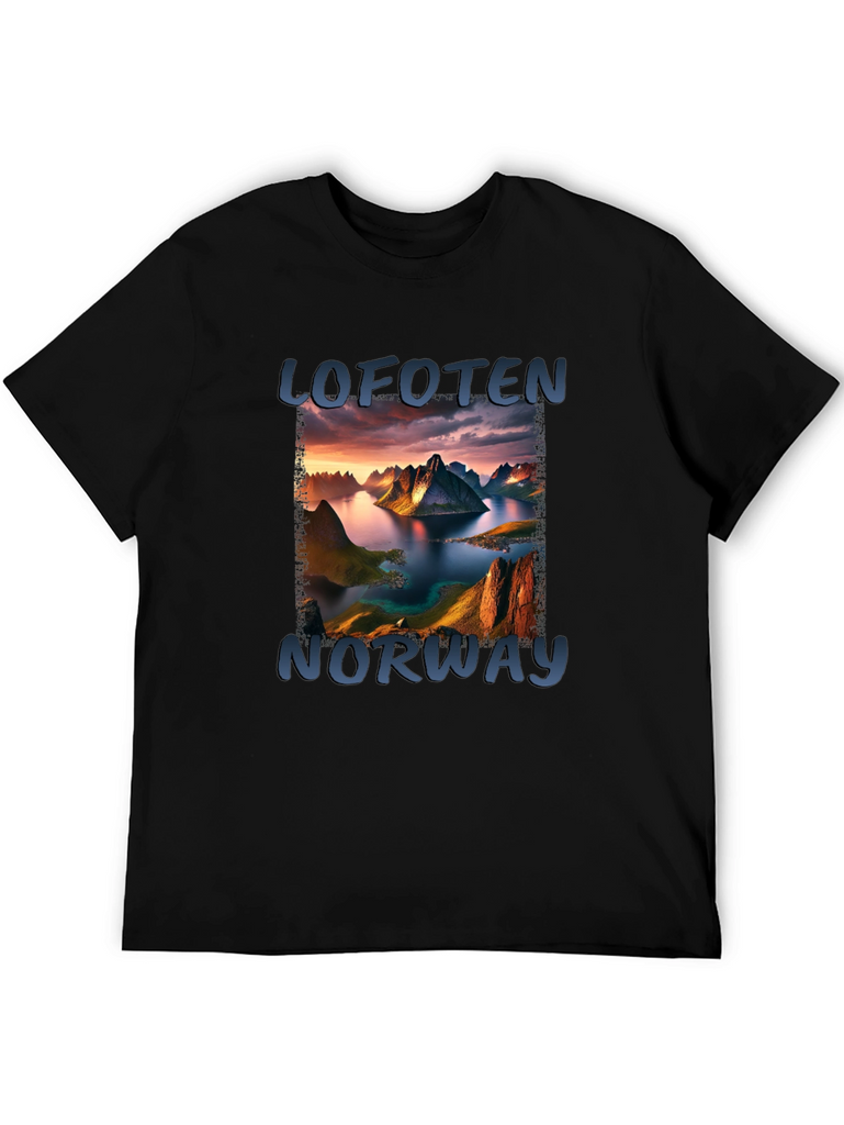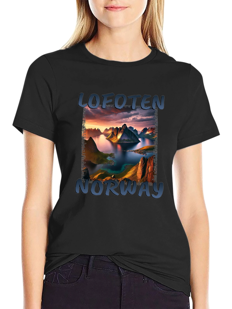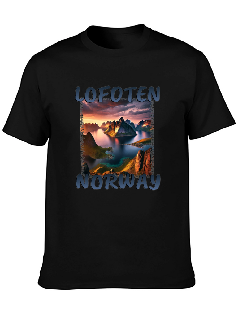 Embrace adventure with this black Lofoten Norway t-shirt. This stylish garment showcases a scenic landscape of the Lofoten Islands. The vibrant image captures the essence of Norwegian beauty, perfect for travel enthusiasts and nature lovers alike. Made from soft, breathable fabric for all-day comfort. Great for casual wear, outdoor adventures, or as a unique gift. Show off your passion for stunning destinations with this eye-catching piece.