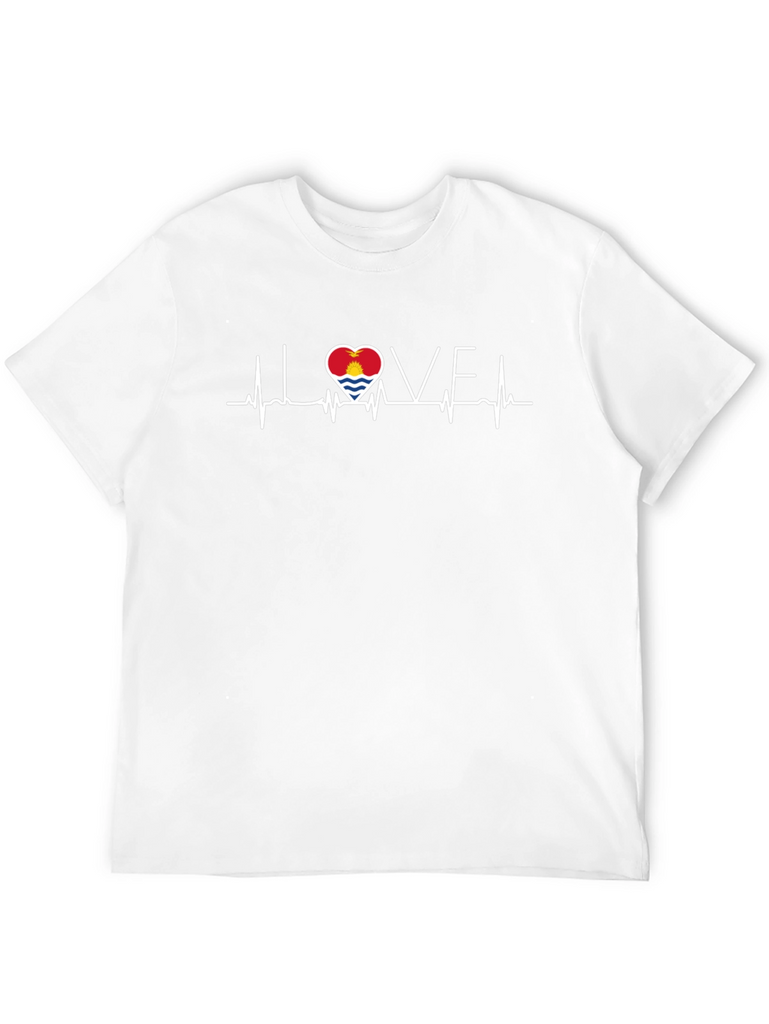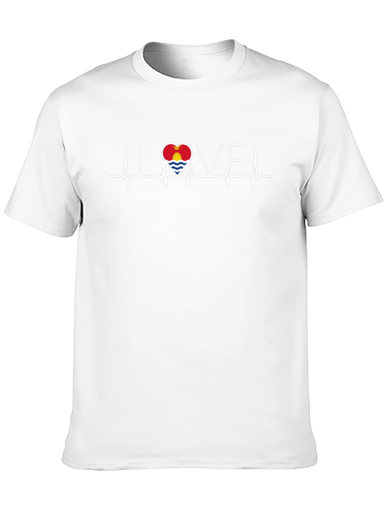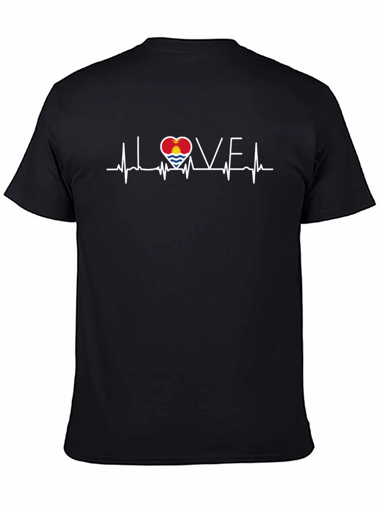 Show your love for Kiribati with this unique black t-shirt. The design features the word 'LOVE' integrated with a heartbeat line, with the 'O' replaced by a heart in the Kiribati flag design. The crisp white lines of the design strongly contrast the shirt, ensuring high visibility. Made from what appears to be a soft, breathable cotton blend, this tee offers both comfort and style. Perfect for casual wear, Kiribati pride events, or as a thoughtful gift for someone who loves Kiribati.