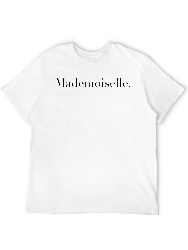 Showcase your style with this sleek black t-shirt. The shirt features the word "Mademoiselle" across the chest, offering a touch of sophistication and charm. Made from what appears to be soft, breathable cotton, this tee ensures all-day comfort. The classic fit makes it perfect for everyday wear, while the minimalist design allows for versatile styling. Pair it with jeans for a relaxed look, or dress it up with a blazer for a chic ensemble. Ideal for casual outings, weekend adventures, or simply lounging at home.