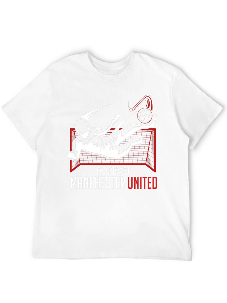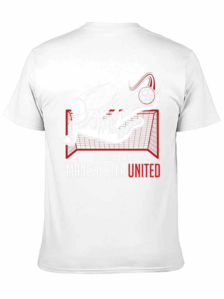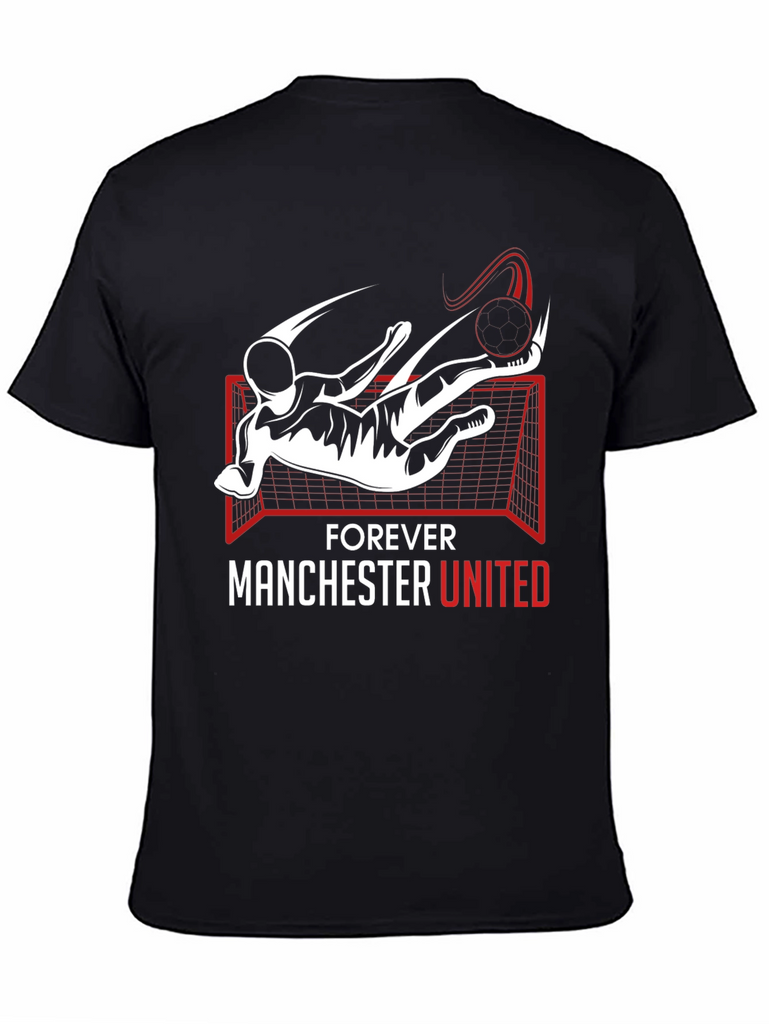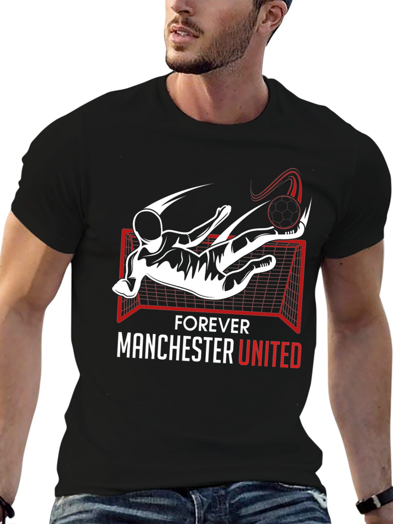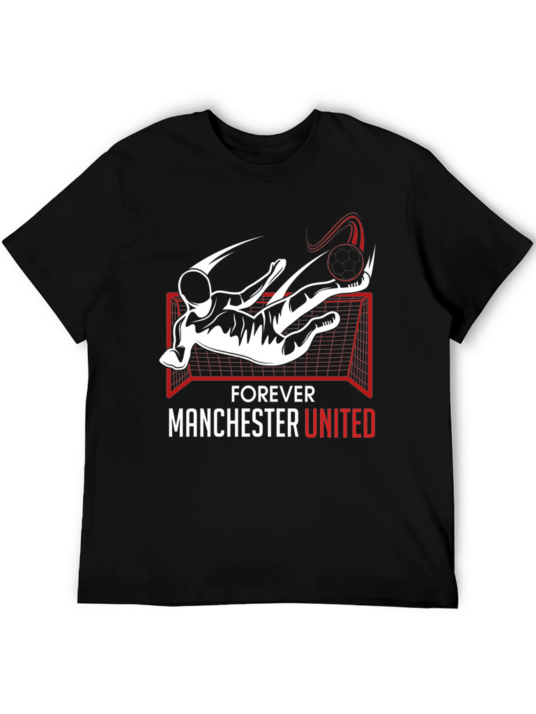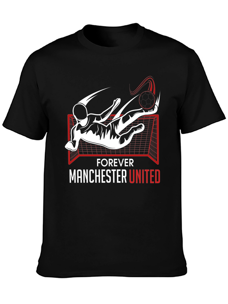 Show your undying support for Manchester United with this unique t-shirt. Featuring a stylized graphic of a goalkeeper making a save inside the team's net, this shirt embodies the never-say-die spirit of the Red Devils. Made from a comfortable, breathable fabric, it's perfect for game days, casual outings, or simply displaying your love for your favorite football club. The words "FOREVER MANCHESTER UNITED" boldly proclaims the team's name, making it an ideal gift for any dedicated supporter. Wear it with pride and let everyone know where your allegiance lies. A must-have for every true Manchester United fan's wardrobe.