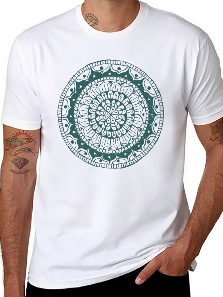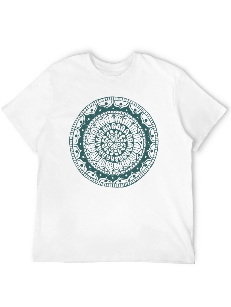 Elevate your casual style with this eye-catching black t-shirt, featuring a beautiful turquoise mandala design. The intricate circular pattern adds a touch of artistic flair to this classic wardrobe staple. Made from soft, breathable fabric, this tee offers exceptional comfort for everyday wear. Perfect for expressing your unique personality, whether you're heading out for a relaxed weekend, practicing yoga, or simply lounging at home. Pair it with your favorite jeans or shorts for a cool and effortless look. Get ready to turn heads and embrace the zen vibes with this standout graphic tee.