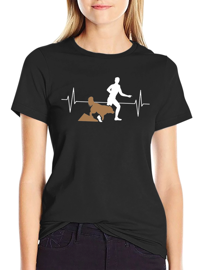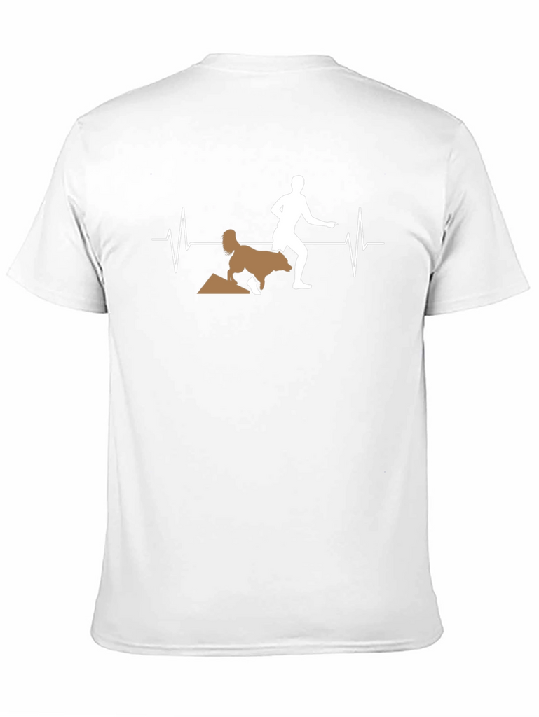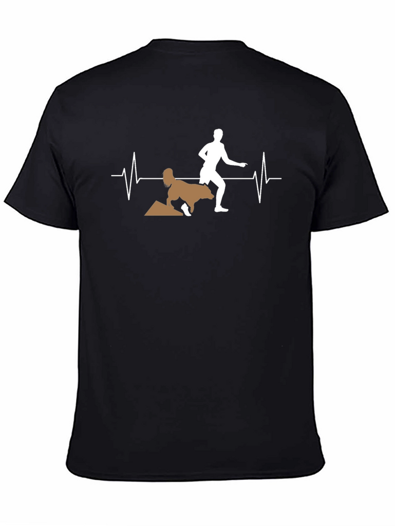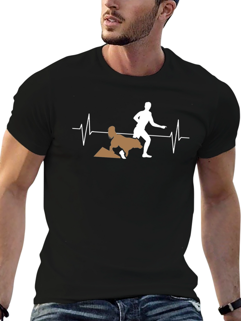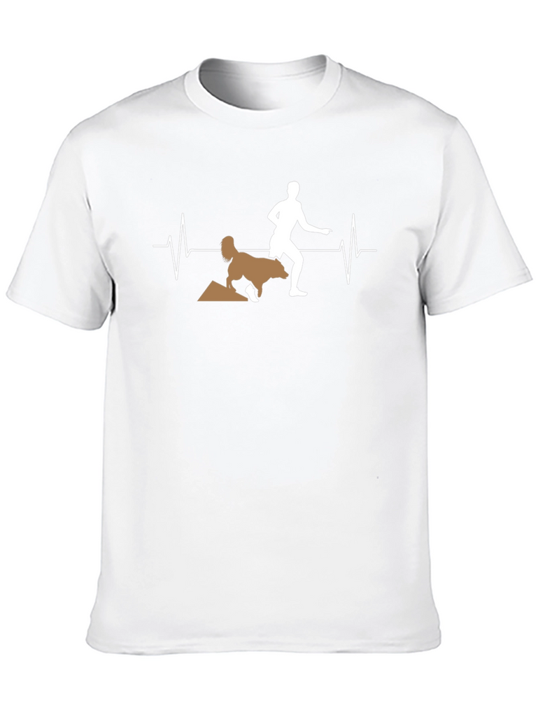 Show off your love for dog agility with this unique graphic t-shirt. Made from a soft, comfortable black fabric, this shirt features a bold design of a dog and its handler navigating an agility course. The white heartbeat line adds a touch of fun and personality. This eye-catching shirt is perfect for casual wear, dog training sessions, or agility competitions. A great conversation starter for dog lovers. This t-shirt is designed for comfort and style. Get yours today and let the world know you are passionate about your furry friend and dog agility sports!