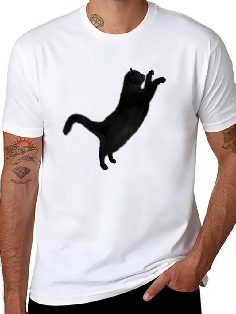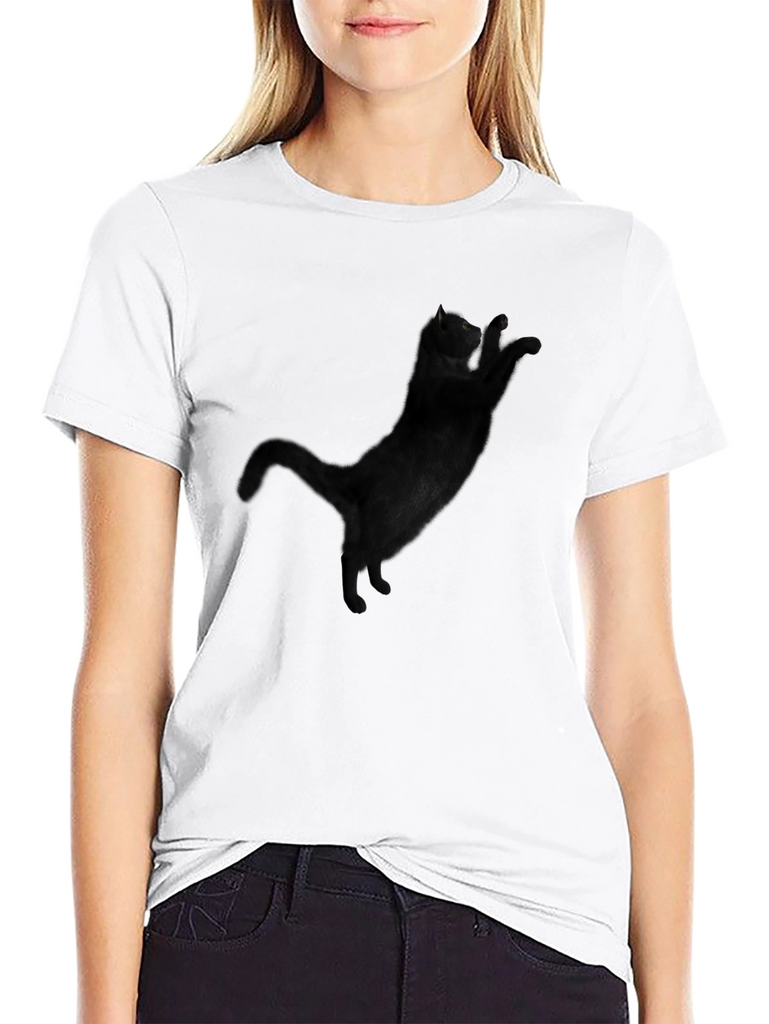 Show off your feline affection with this cool black t-shirt! Featuring a unique graphic of a black cat on the front, this tee is perfect for cat lovers. The shirt appears to be made of a soft and comfortable material, making it ideal for casual wear. The classic cut and short sleeves offer a relaxed fit, suitable for everyday activities, lounging at home, or hanging out with friends. Get yours today and let your love for cats shine!