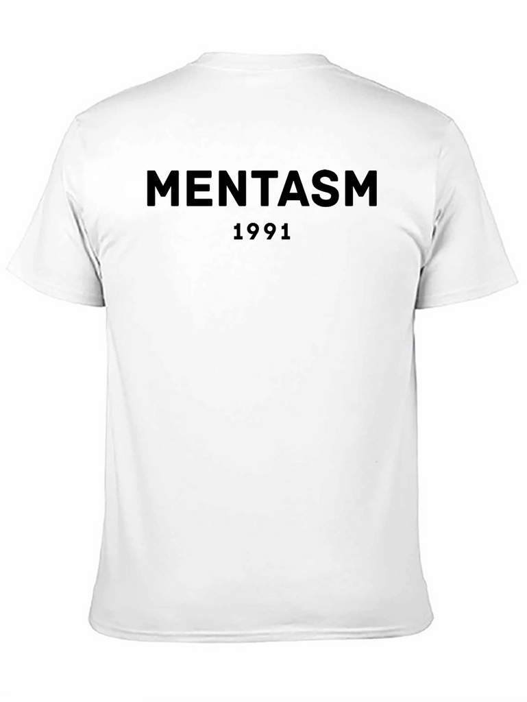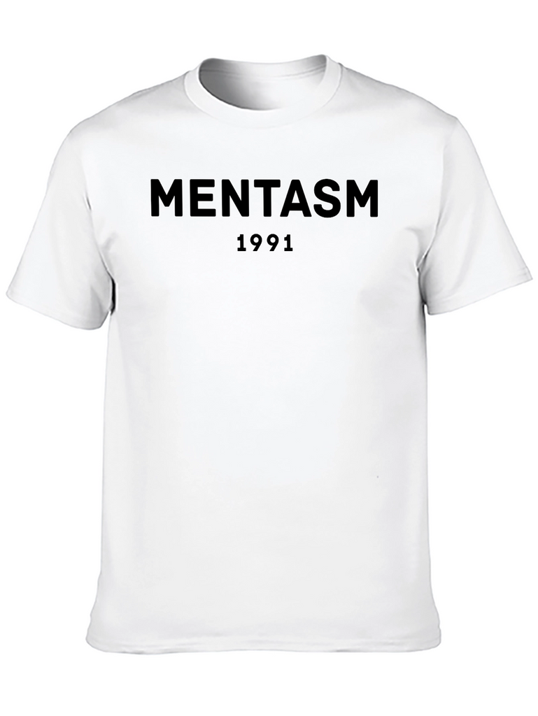 Show off your love for electronic music with this classic Mentasm 1991 T-shirt. This tee features the iconic "Mentasm 1991" text printed on a soft, black cotton fabric. The clean, minimalist design makes it versatile for everyday wear or a night out. Its comfortable fit ensures all-day comfort while expressing your individual style. This tee is perfect for music fans or anyone who appreciates classic designs and high-quality apparel. Machine washable for easy care. Available in various sizes.