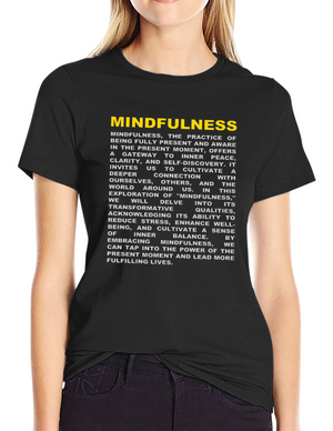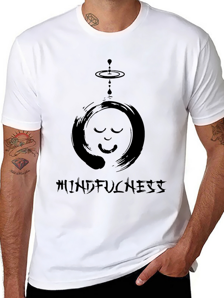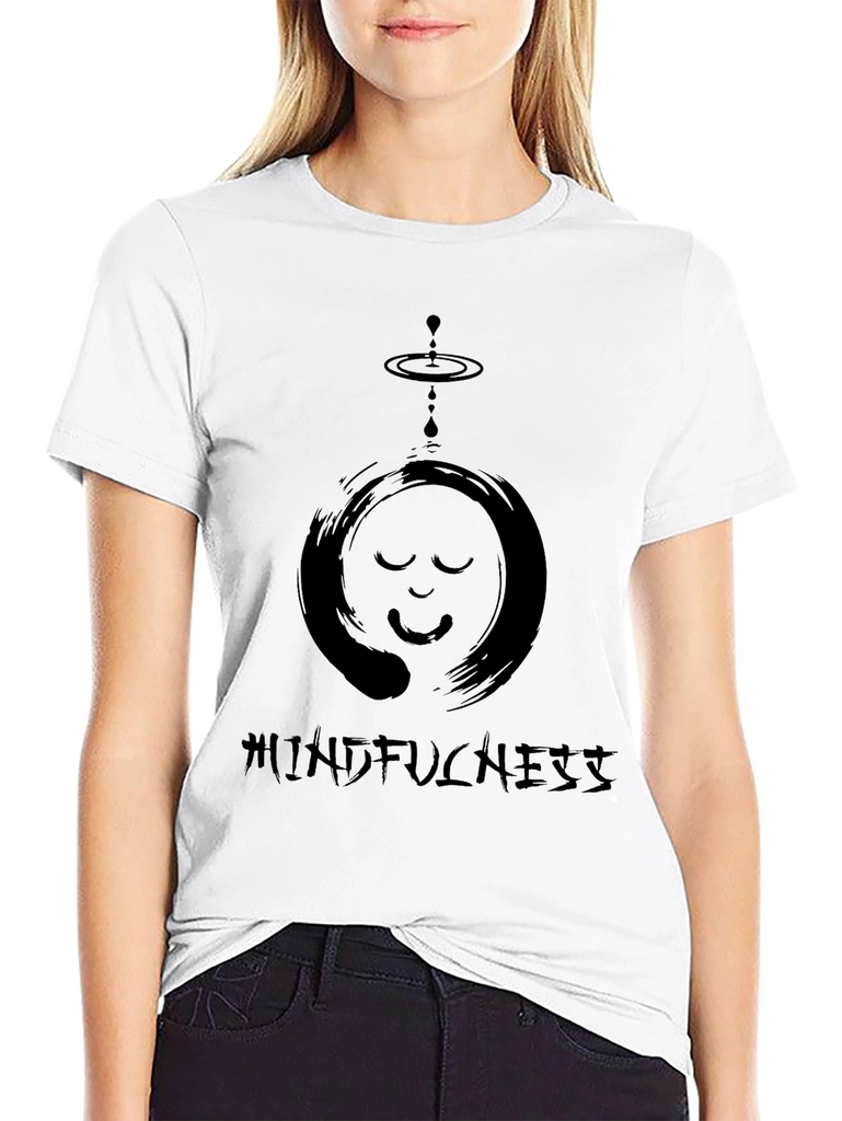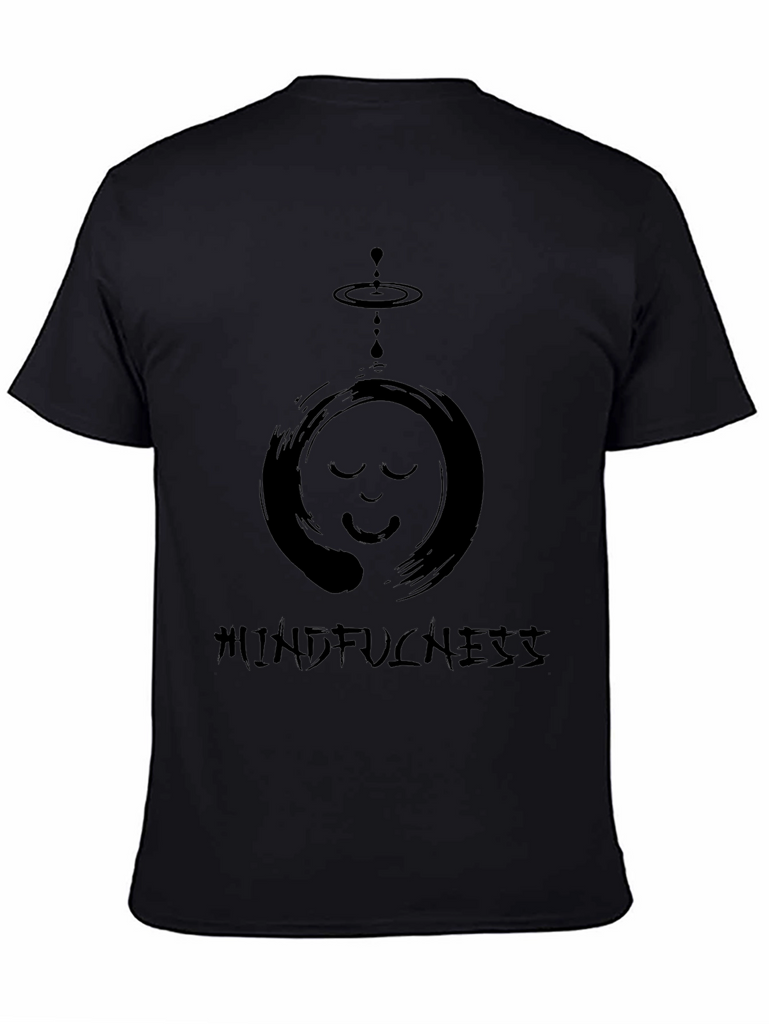 Embrace tranquility with our Mindfulness T-Shirt. This stylish black tee features a unique zen circle design with a serene smiley face at its center, symbolizing peace and harmony. Above it is a water droplet design, further emphasizing the calm. Below, the word 'MINDFULNESS' is written in unique and bold font. Made from comfortable, breathable fabric, this shirt is perfect for yoga, meditation, or everyday wear. Show off your mindful lifestyle with this eye-catching and meaningful design, a conversation starter that looks great! Experience the calming influence of zen wherever you go.