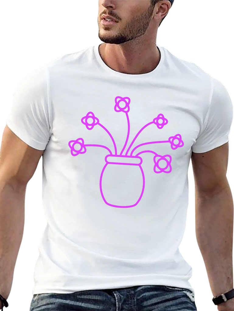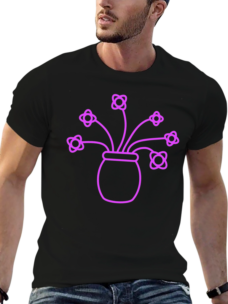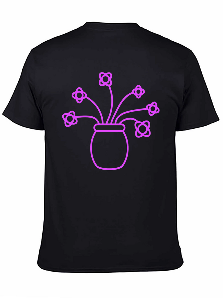 Show off your love of flowers with this eye-catching t-shirt. The shirt features a neon purple graphic of a flower pot with several blooming flowers. This fun design is sure to turn heads. Made from comfortable, breathable cotton, this shirt is perfect for everyday wear. Whether you're heading to a garden party or just running errands, this floral t-shirt will add a touch of whimsy to your outfit. The shirt is a unisex fit, and is sure to be a favorite for anyone looking to add some fun to their wardrobe.