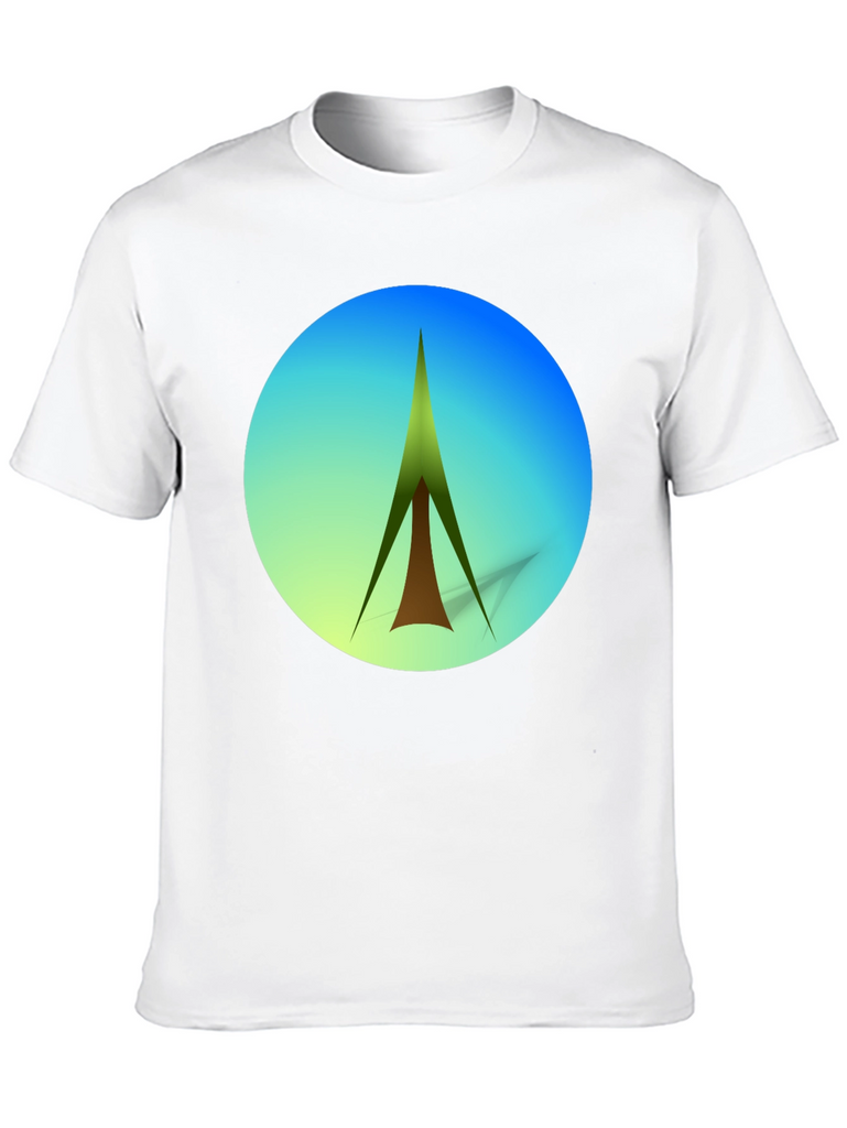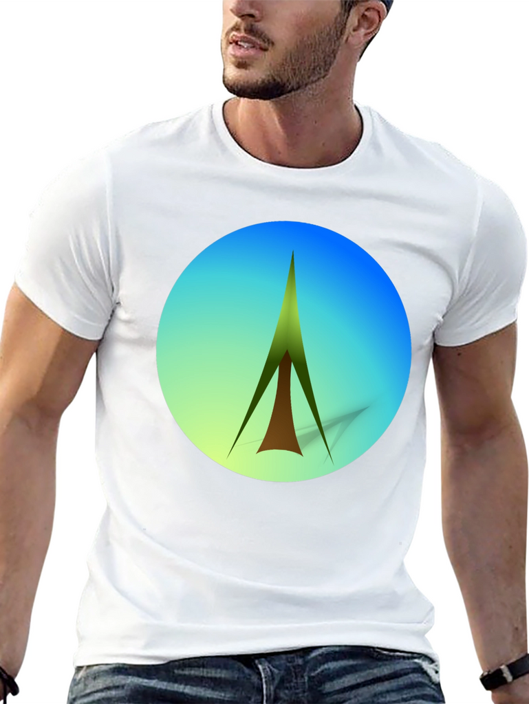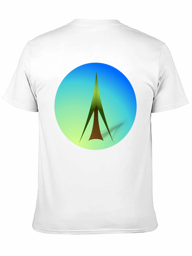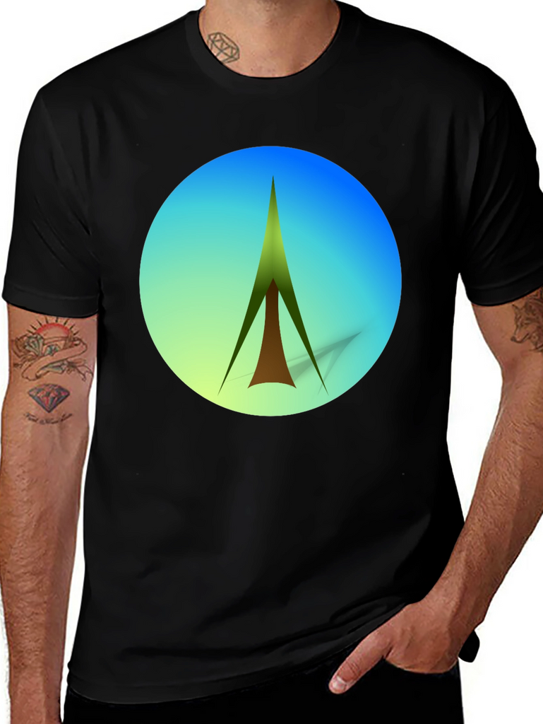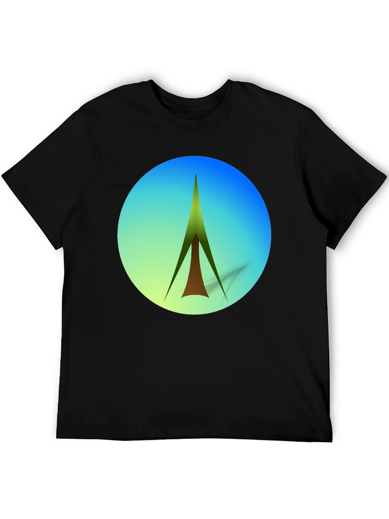 Embrace nature-inspired style with this unique graphic tee. Featuring a modern, geometric tree design set within a gradient blue and green circle, this shirt offers a contemporary look. The design is prominently displayed on a classic black tee. Made from a comfortable-looking fabric, this tee is ideal for casual wear. Whether you're exploring the outdoors or simply looking to express your love for nature, this tee is the perfect choice. Its eye-catching design and versatile color make it easy to pair with jeans, shorts, or your favorite casual pants.