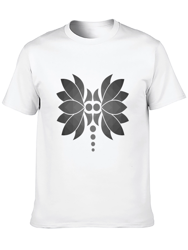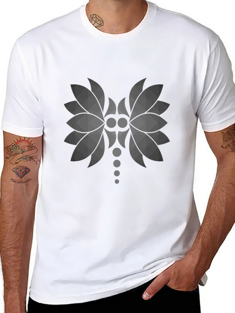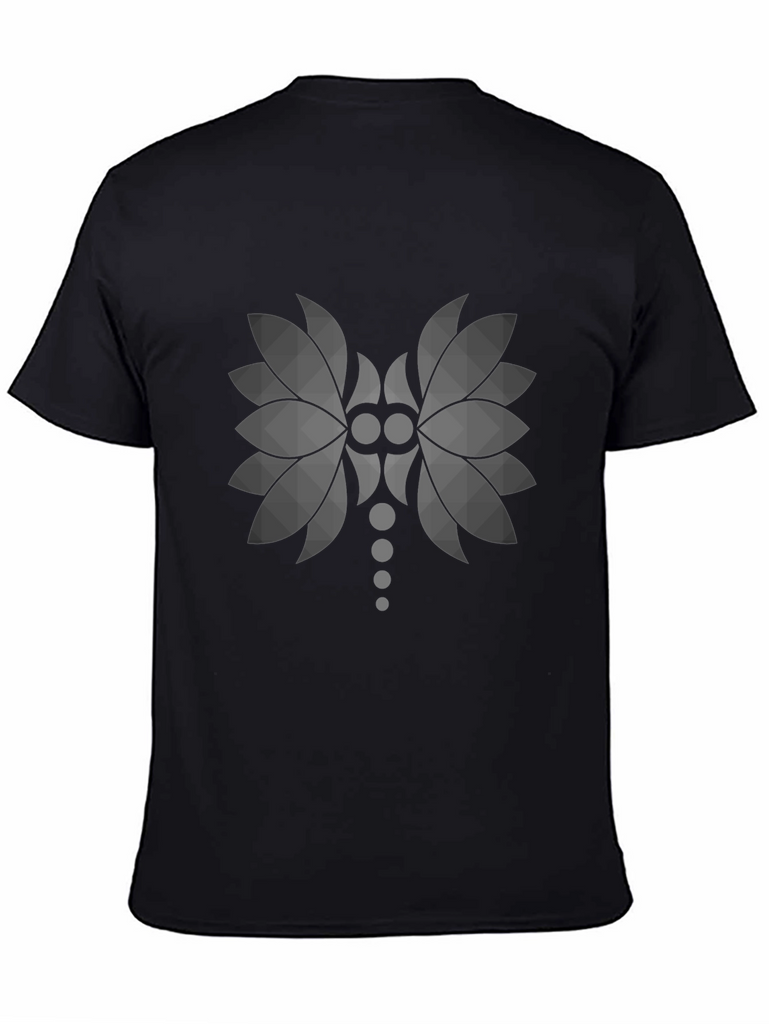 Elevate your casual style with this contemporary black t-shirt. Crafted from soft and breathable fabric, this tee features a striking graphic design on the front. The geometric pattern is a modern, stylized floral design, adding a touch of unique flair to your wardrobe. Perfect for everyday wear, this versatile t-shirt can be paired with jeans, shorts, or chinos for a relaxed yet fashionable look. The comfortable fit and eye-catching print make it an ideal choice for expressing your individuality. A great addition to any wardrobe, this t-shirt offers both comfort and style.
