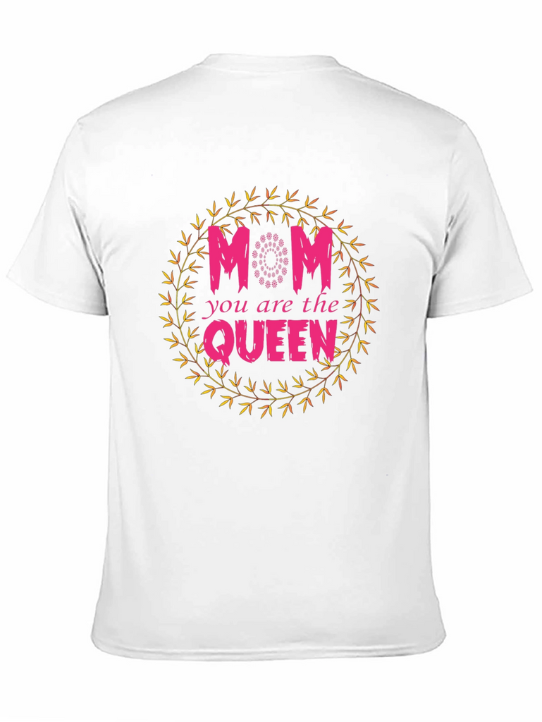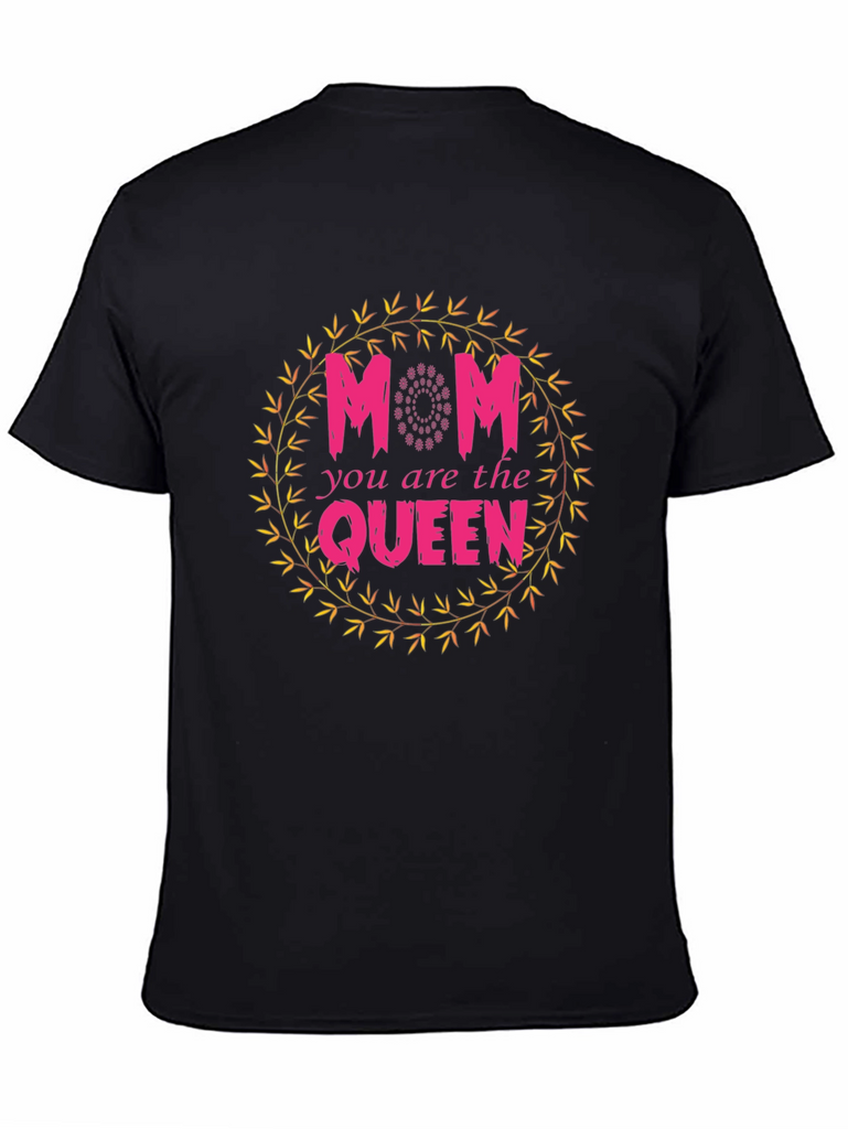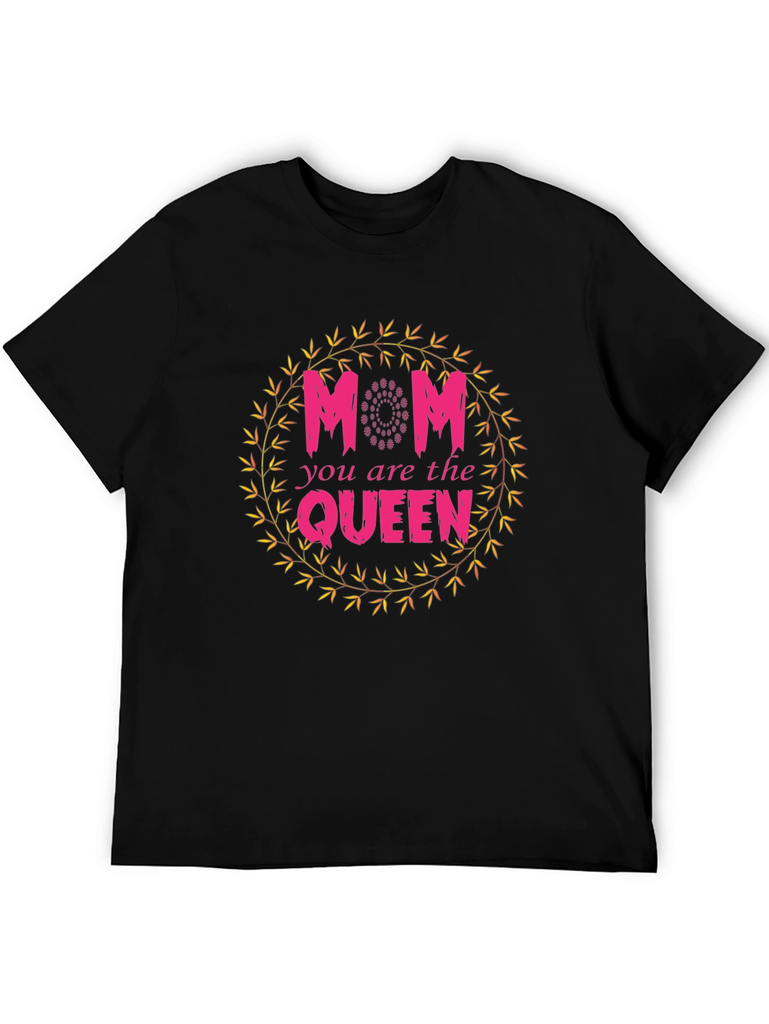 Celebrate the queen of your heart with this stylish black t-shirt. This tee features a vibrant pink "Mom You are the Queen" design encircled by a decorative gold wreath. The bold lettering and eye-catching floral accent make it a fashionable statement piece. Crafted from a soft, comfortable fabric, this t-shirt is perfect for everyday wear or special occasions. Show your appreciation for mom with this unique and trendy gift! Great for mother's day, birthdays, or just to let her know she's the best.